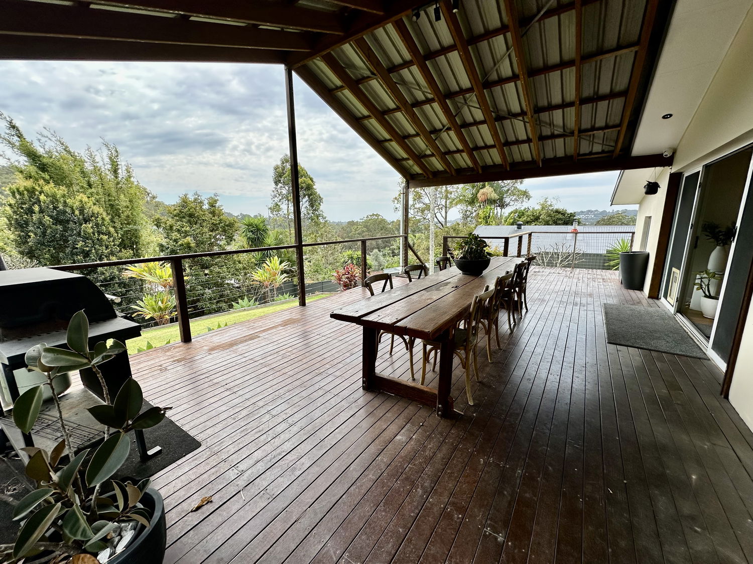 – Huge covered outdoor entertaining deck with views of the Currumbin hills – Large separate laundry – Airy hardwood timber deck, perfect for indoor/outdoor living