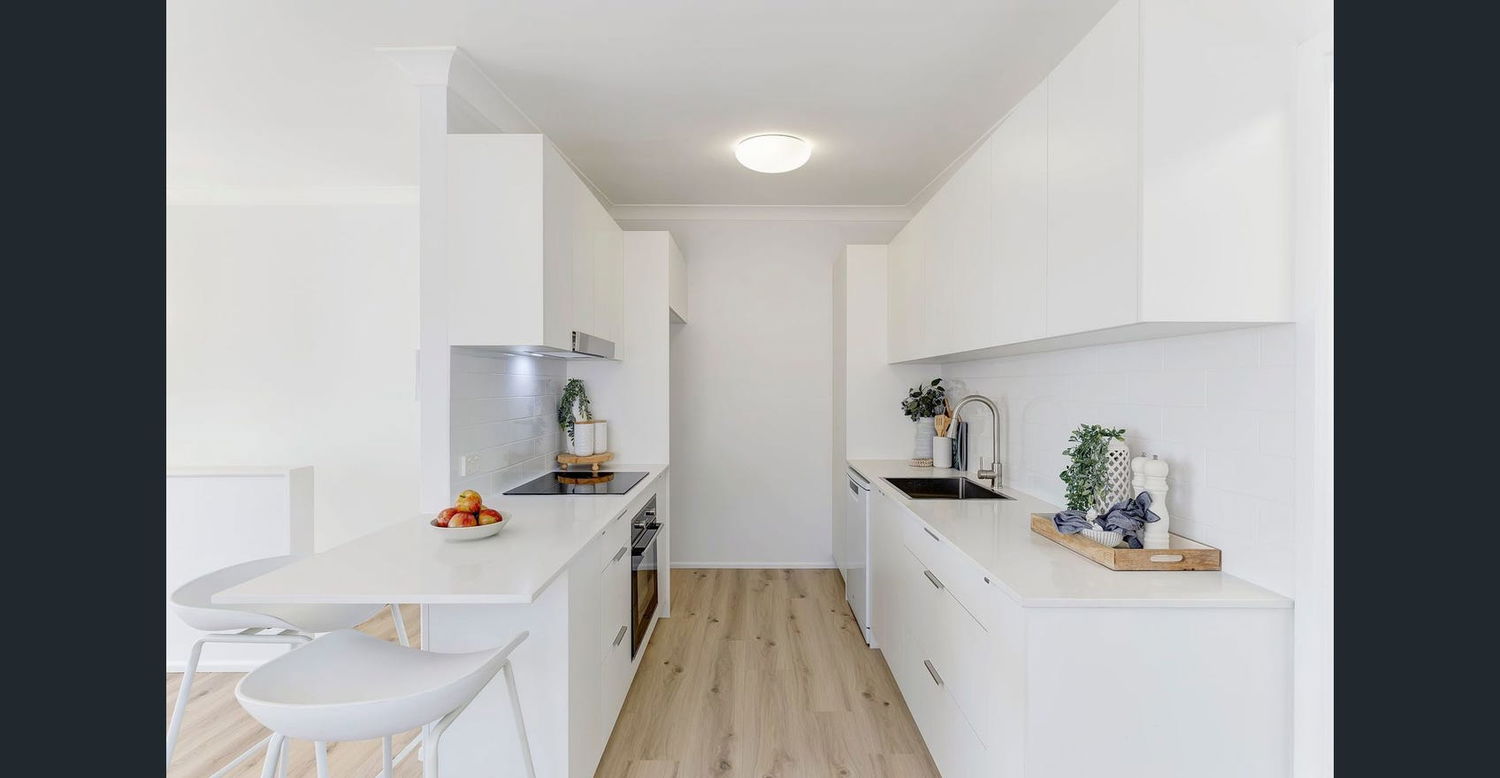 # Designer entertainer’s kitchen with stone benchtops, breakfast bar, soft-close cabinetry, dishwasher and brand new appliances