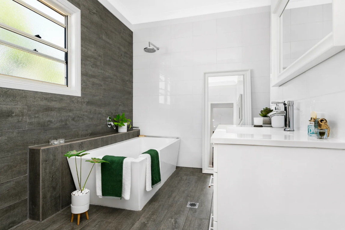# Upstairs bathroom has recently been renovated (Photos of the bathroom with bath to be updated)