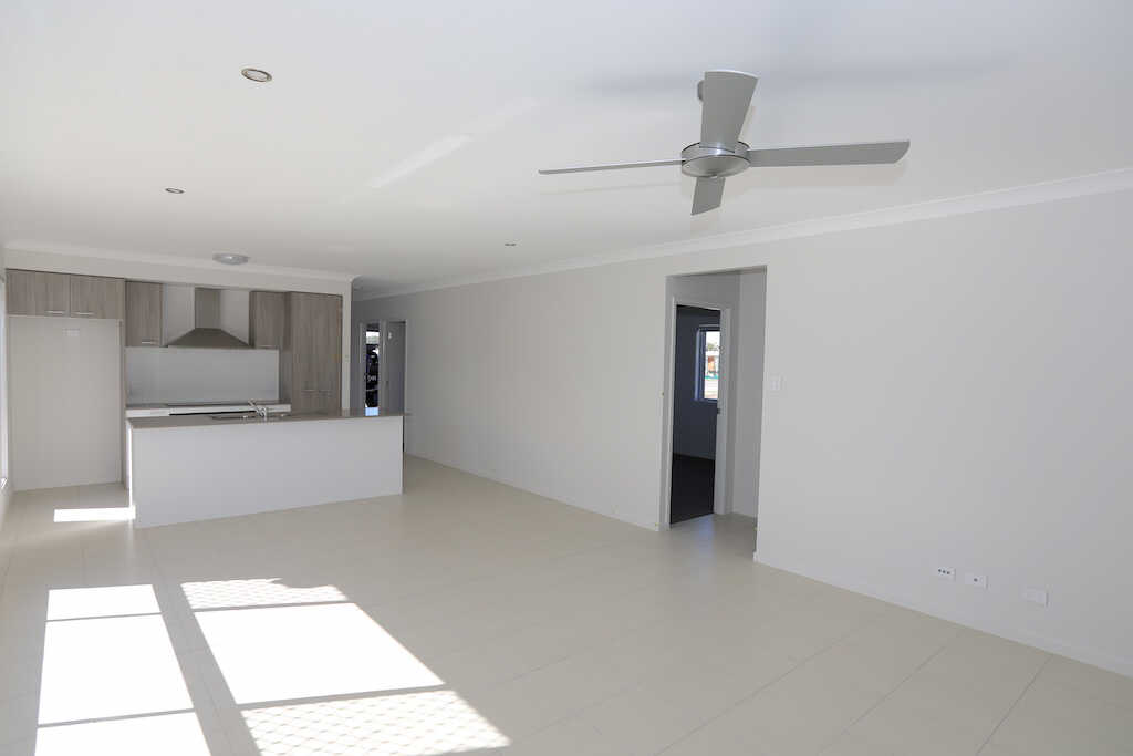 The open-plan living and dining area provides the perfect space for family gatherings, flowing seamlessly into the kitchen and overlooking the outdoor entertaining area – the space also includes aircon. High quality appliances equip the kitchen as well as ample storage, stone benchtops, and a large island bench. Behind the kitchen there is an additional family room/ media room which is open and has carpet for comfort.