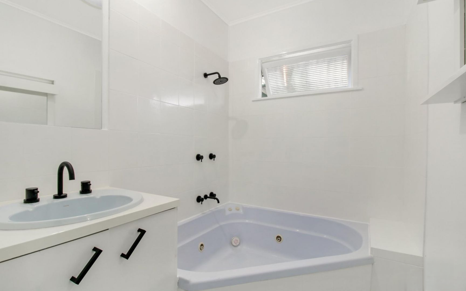 # Main bathroom with spa bath shower combo