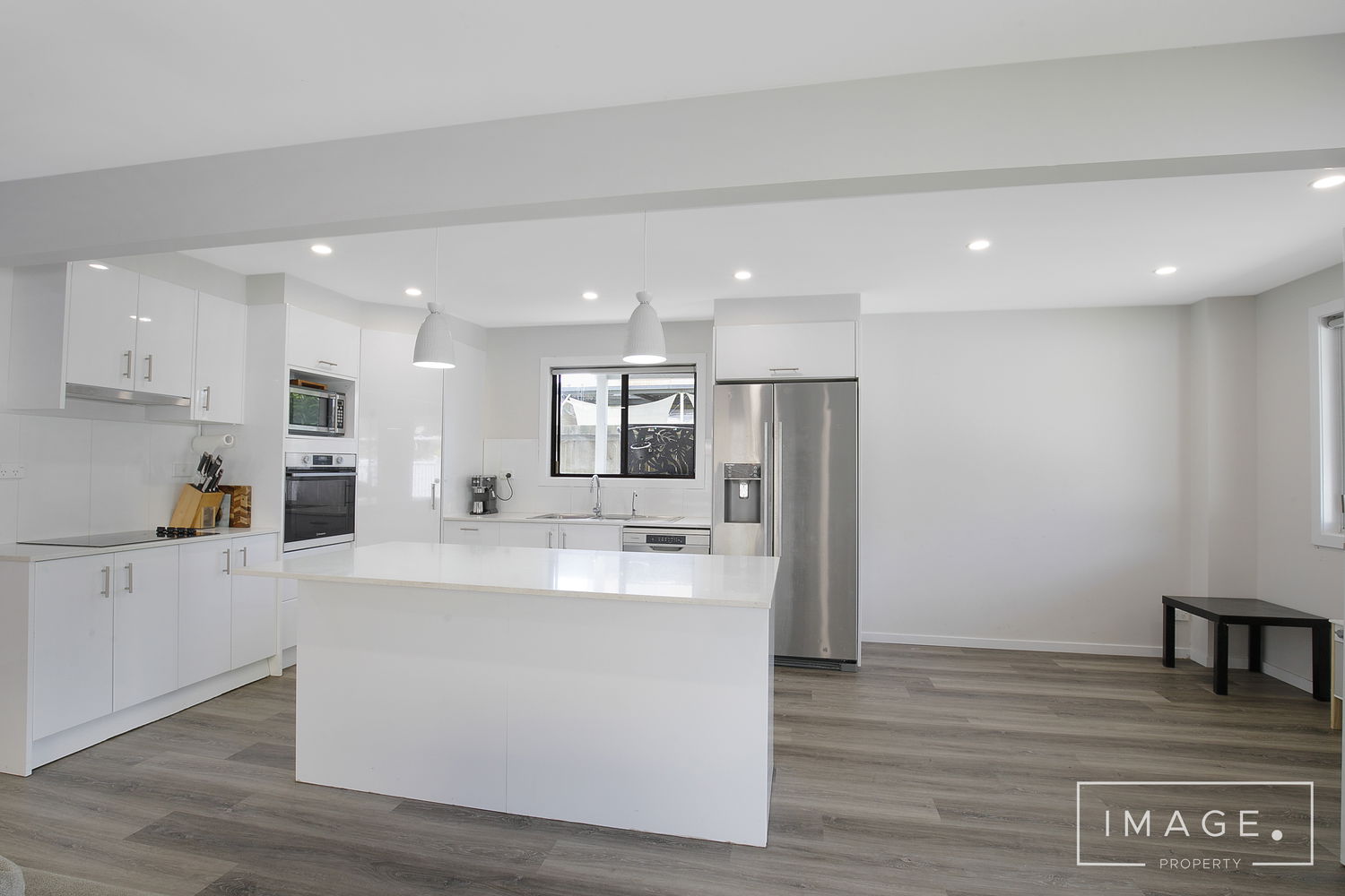 # Renovated kitchen with electric cook top, oven and dishwasher