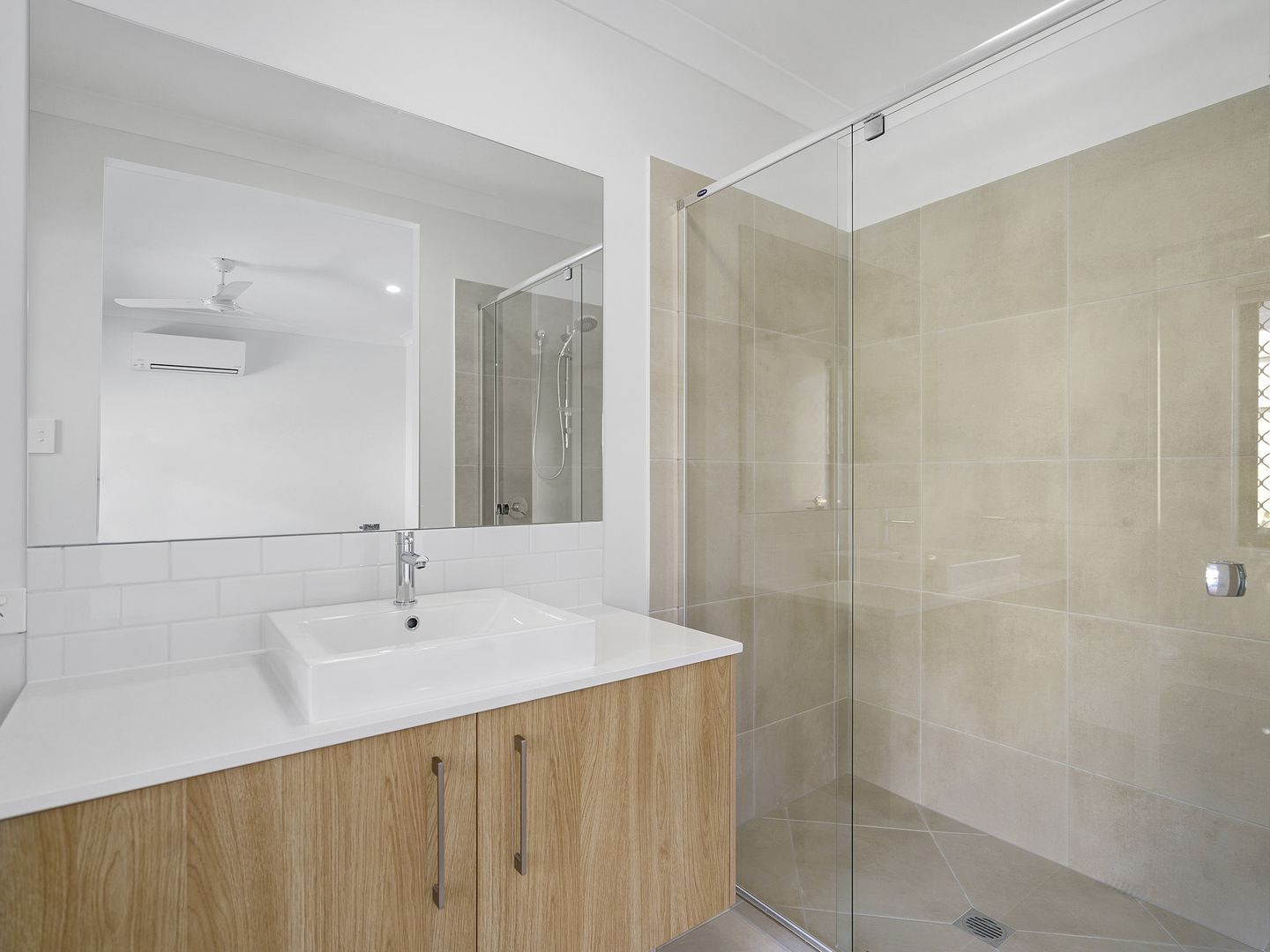 # Ensuite with large shower cavity and ample storage to vanity.