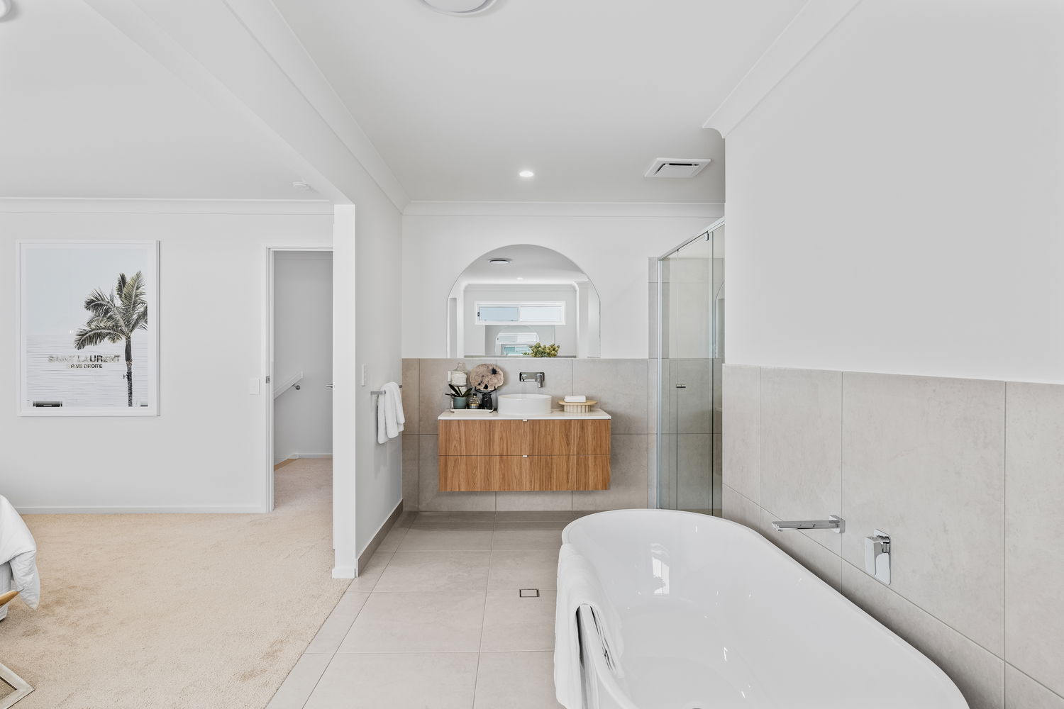 Welcome to a home that defines contemporary coastal luxury. This stunning ex-display residence showcases impeccable finishes, a light-filled open plan design and seamless indoor-outdoor living, all perfectly positioned in sought-after Palmview. From the moment you step inside, you’re greeted by warm timber floors, soaring ceilings and a beautifully curated neutral palette. The expansive living and dining zone flows effortlessly to the covered alfresco area, creating the ultimate entertainer’s space overlooking the sparkling in-ground pool. The designer kitchen is both stylish and functional, complete with stone benchtops, feature cabinetry, breakfast bar seating and a generous butler’s pantry. Upstairs, the master suite is a true sanctuary. Oversized and beautifully appointed, it features a large walk-in robe and a luxurious ensuite with double vanities, a freestanding bathtub and premium finishes throughout. Three additional spacious bedrooms are located on the upper level, serviced by a stunning main bathroom with bathtub. With five bedrooms in total and three bathrooms across two levels, the layout offers flexibility for families of all sizes, including guest accommodation or a home office option.