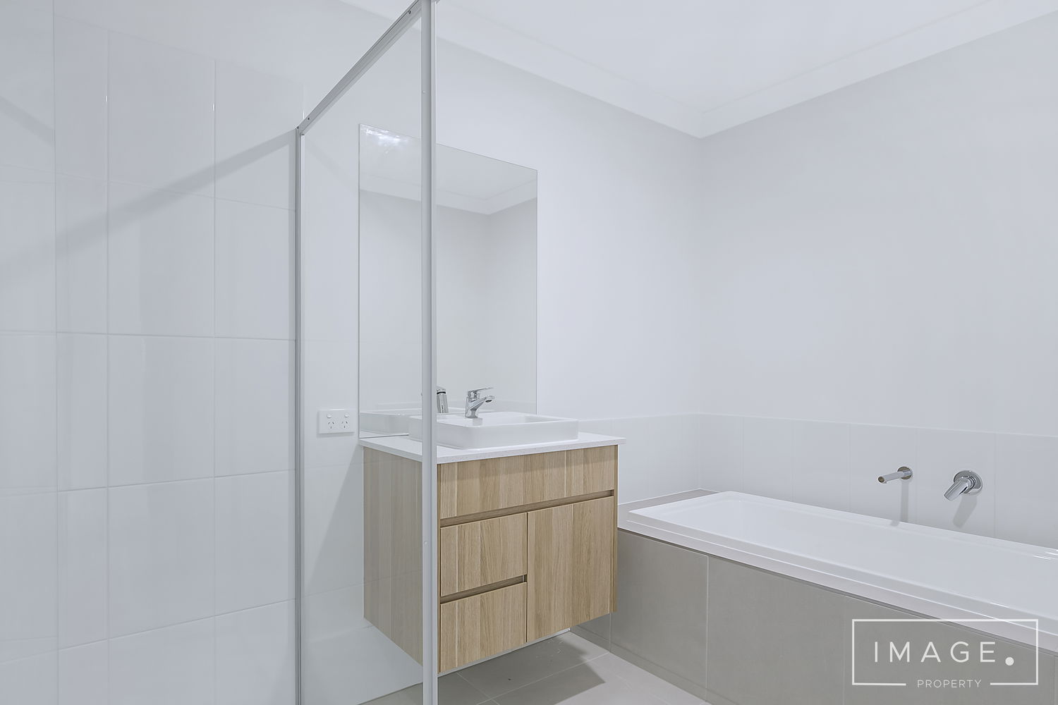 # Main Bathroom with ample storage to vanity, large shower cavity and separate BATHTUB.