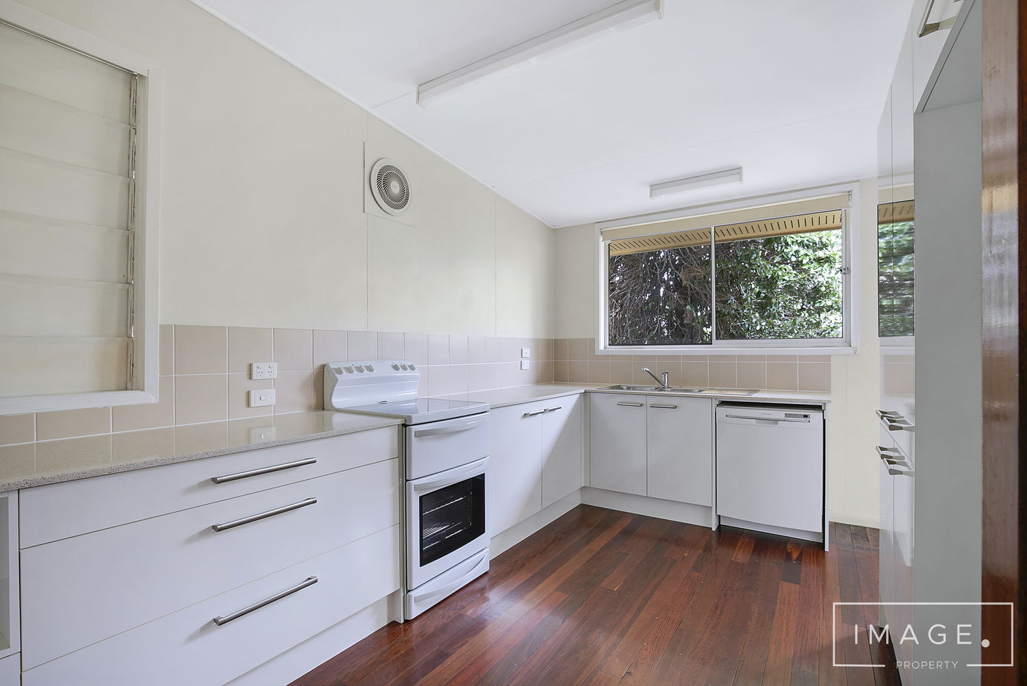 Walk to Chermside Shopping Centre and transport from this well constructed property in the heart of Aspley. Home features beutifully renovated kitchen, timber floors, 3 bedrooms plus study, and 2 bathrooms. Loads of room and storage downstairs, security screens throughout and fully fenced with side access.