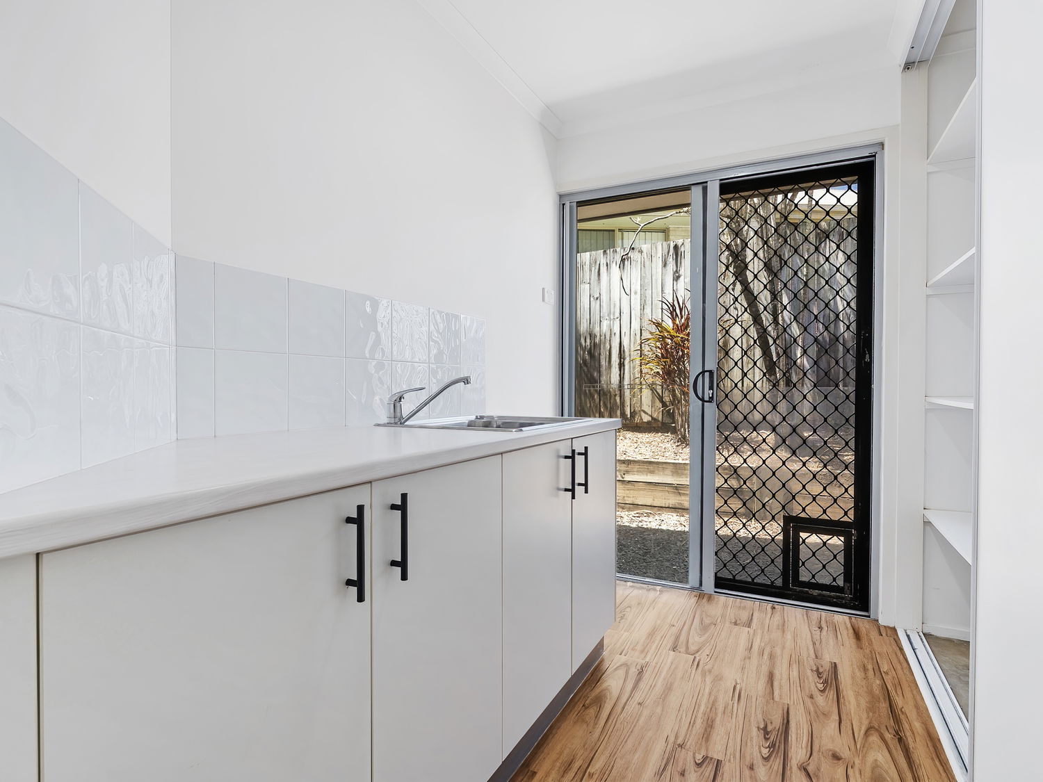 Set back behind tropical landscaping, this light-filled home offers easy family living with a spacious open-plan layout flowing straight out to an oversized covered deck—perfect for weekend BBQs, morning coffees and relaxed entertaining. Inside, you’ll love the fresh, modern finishes, generous kitchen storage, and the comfort of air-conditioning and ceiling fans throughout. Outside, there’s a fully fenced grassy yard with plenty of space to enjoy.