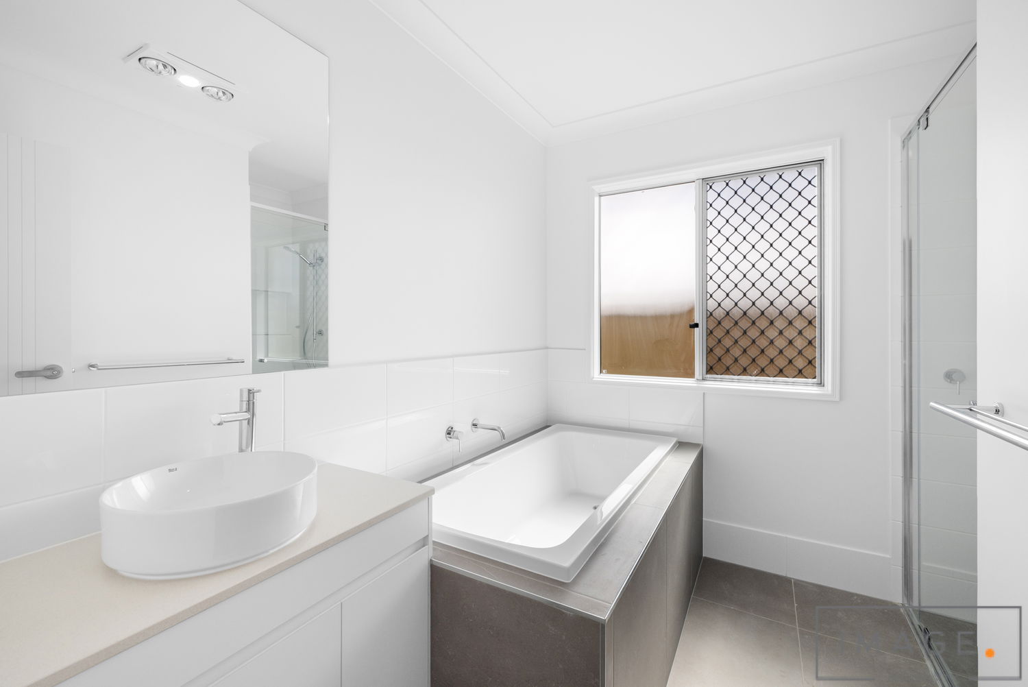 # Main Bathroom with ample storage to vanity and large shower cavity.