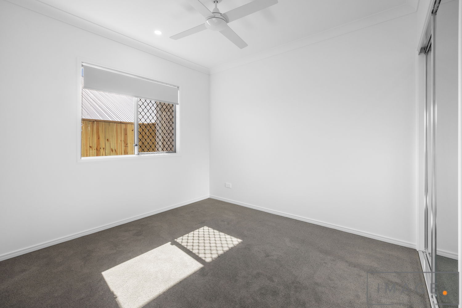 # Large Main Bedroom with air conditioning, ceiling fan, walk-in wardrobe, and private ensuite.