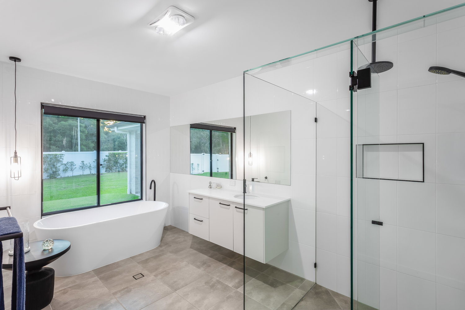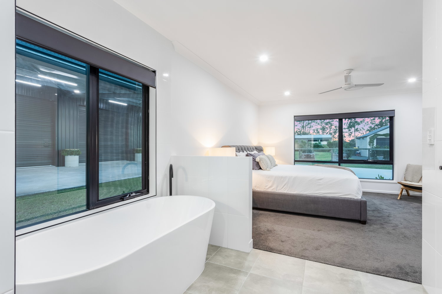 The master suite is a true showpiece. Designed with an open, luxurious feel, it features a stunning ensuite with a freestanding bath, oversized shower, his and hers basins, and a separate toilet. A large walk-in wardrobe completes the space, creating a private retreat within the home.