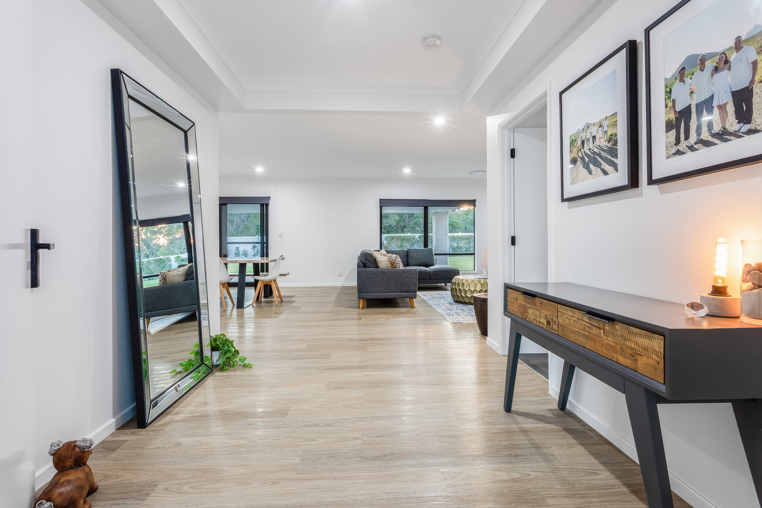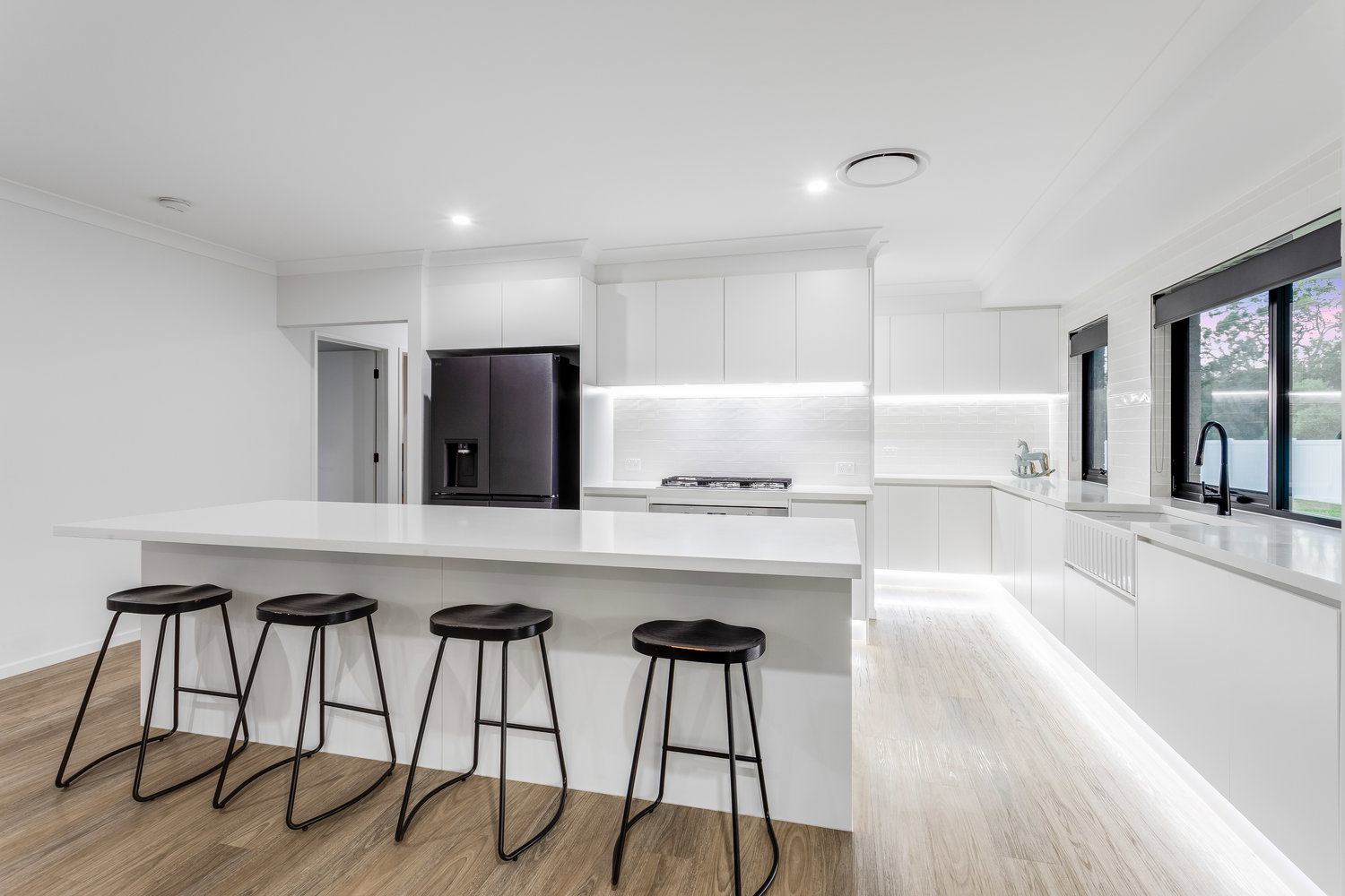 Inside, the home opens into an expansive open-plan living, dining, and kitchen space, where extra-high ceilings and natural light create an incredible sense of scale. This is a home built to impress – yet still designed for everyday living.