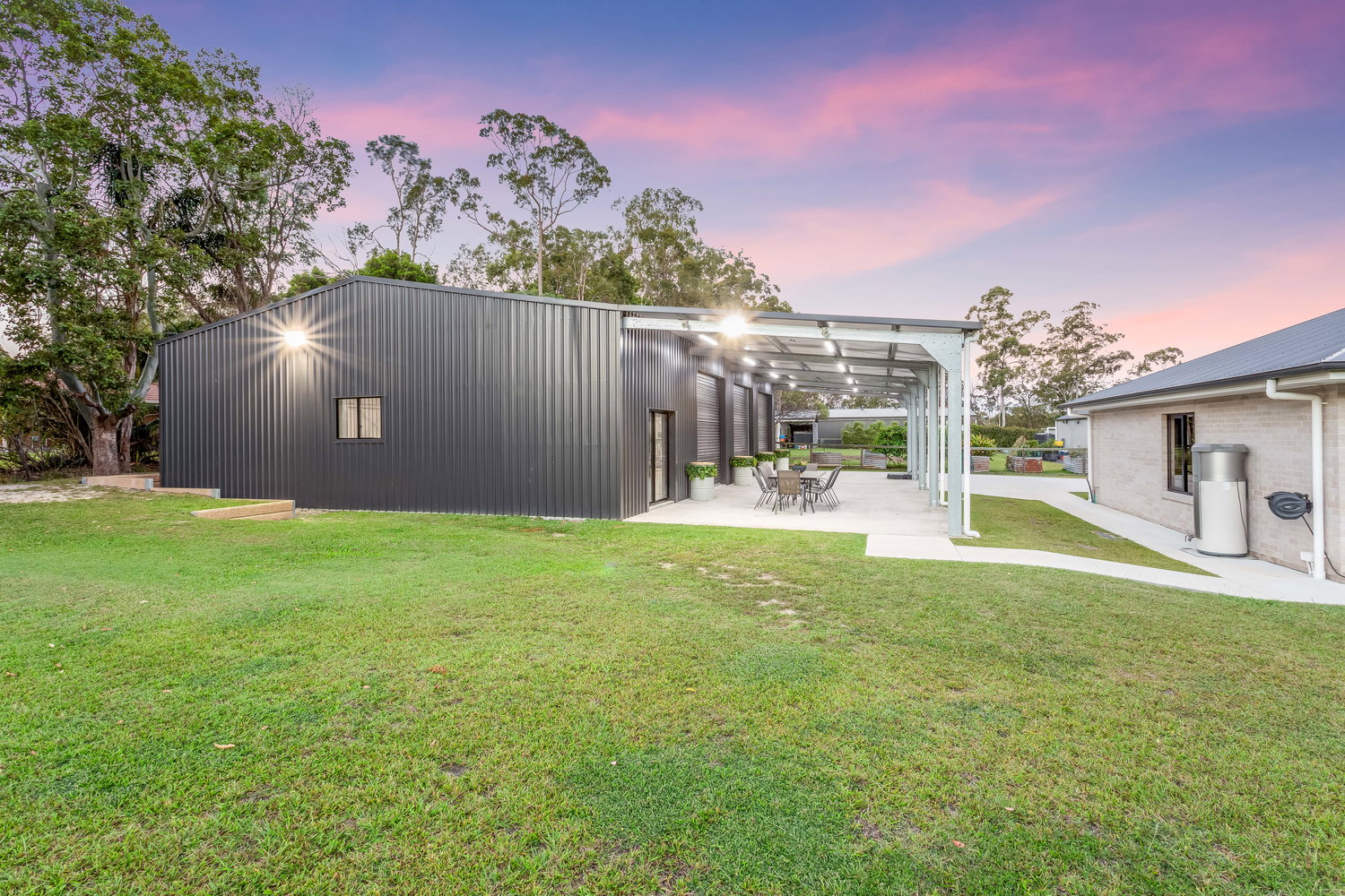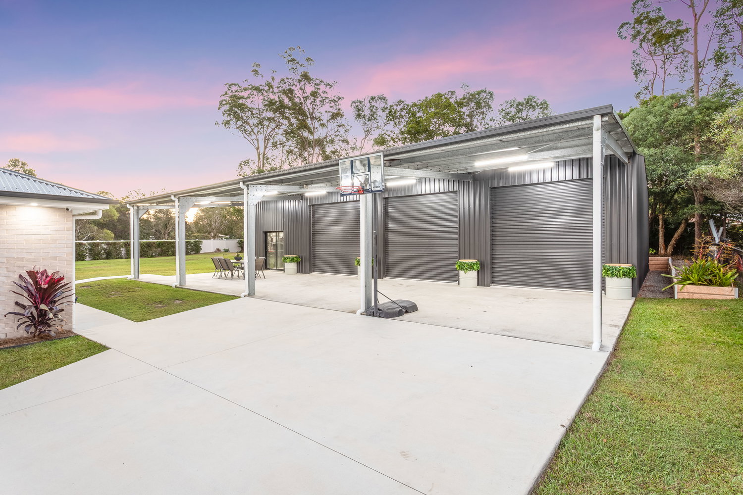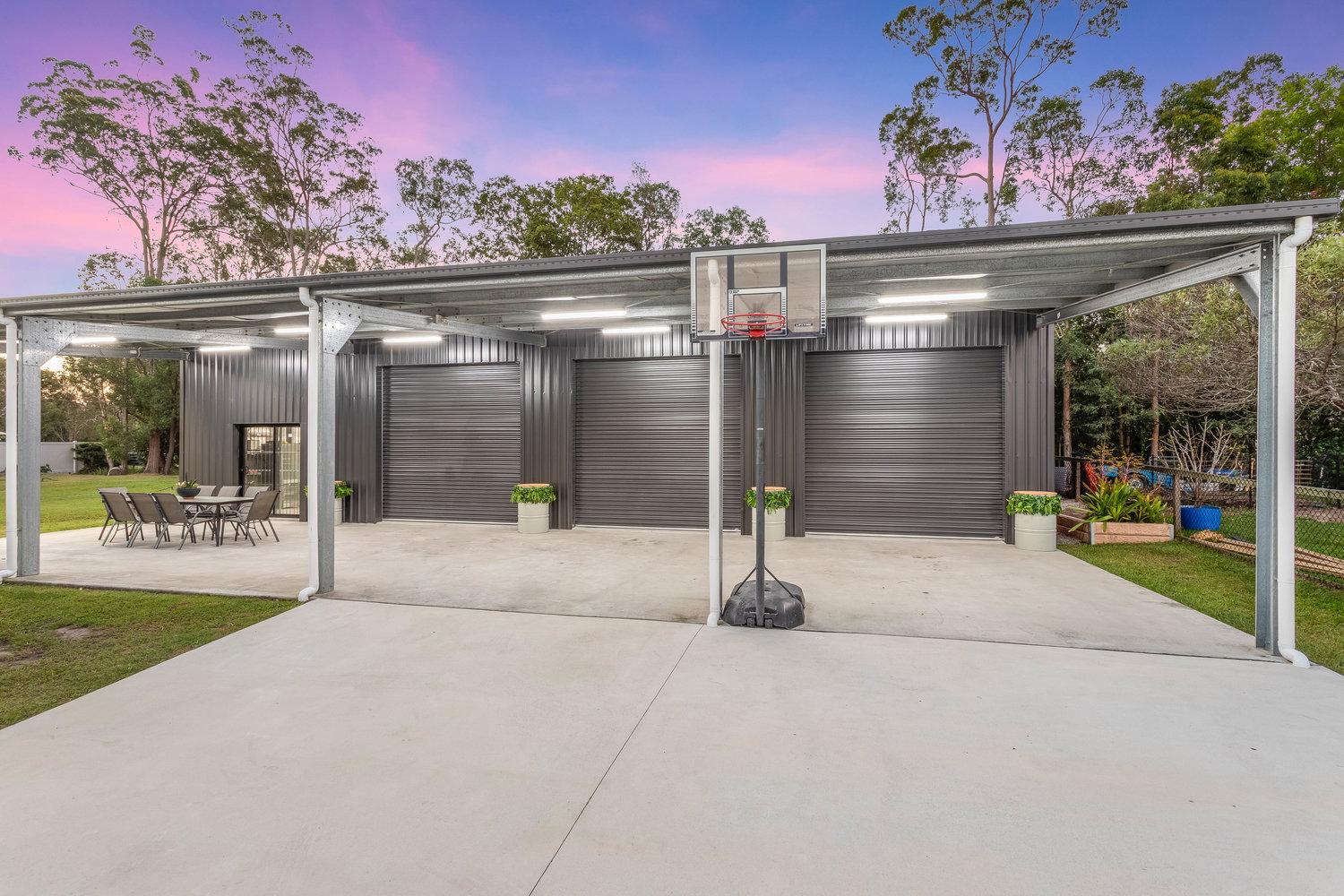 For those needing serious storage or workspace, the shed is a standout feature. Measuring an impressive 18m x 12m with an additional 18m x 6m covered carport, it is perfectly suited for trades, car enthusiasts, or those with boats, caravans, or machinery. Complete with electric roller doors and an industrial fan, it’s ready to go.