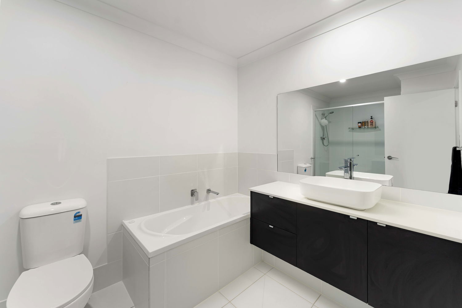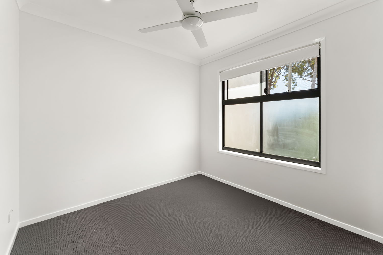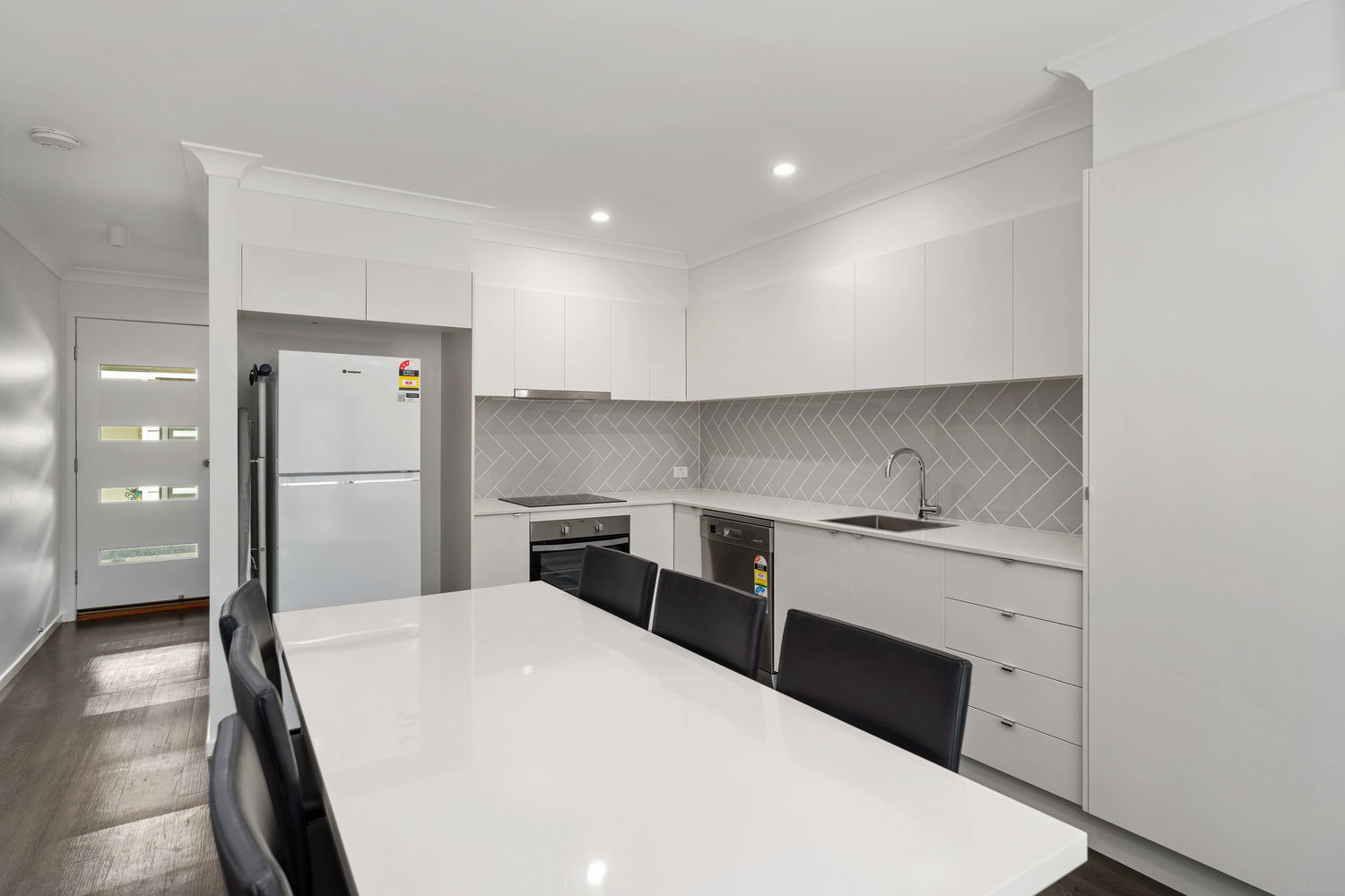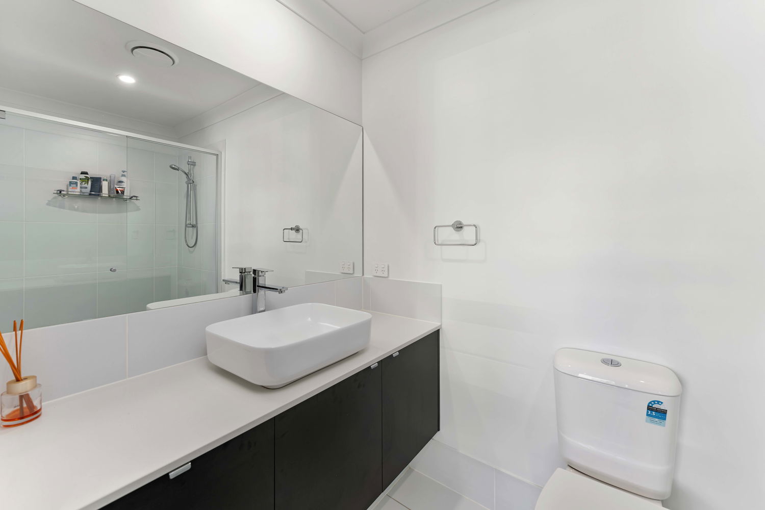 Inside this 2019-built townhouse, you’ll find an air-conditioned open plan living and dining area flowing out to a private courtyard, ideal for relaxing or entertaining. The modern kitchen is finished with stone benchtops and a sleek, functional design. Downstairs also includes a double-length lock-up garage with room for two cars — a rare bonus for townhouse living. Upstairs, the master bedroom includes air conditioning, an ensuite with stone benchtops, and direct access to the balcony. Ceiling fans feature throughout, ensuring year-round comfort in every room.