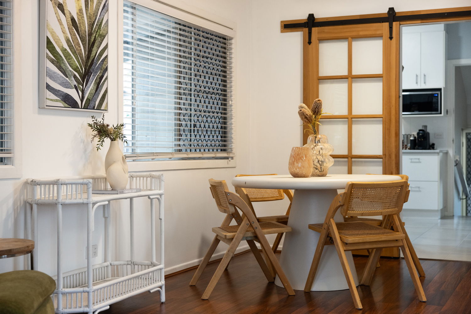 Step inside to find a bright and welcoming flow that carries throughout the home, creating a warm and inviting atmosphere. The open-plan living and dining area is thoughtfully designed for both comfort and functionality, with air conditioning providing year-round comfort. Whether you’re hosting friends, spending time with family, or simply relaxing, this central space offers the perfect setting. Large windows fill the room with natural light, enhancing the sense of openness from the moment you walk through the door.