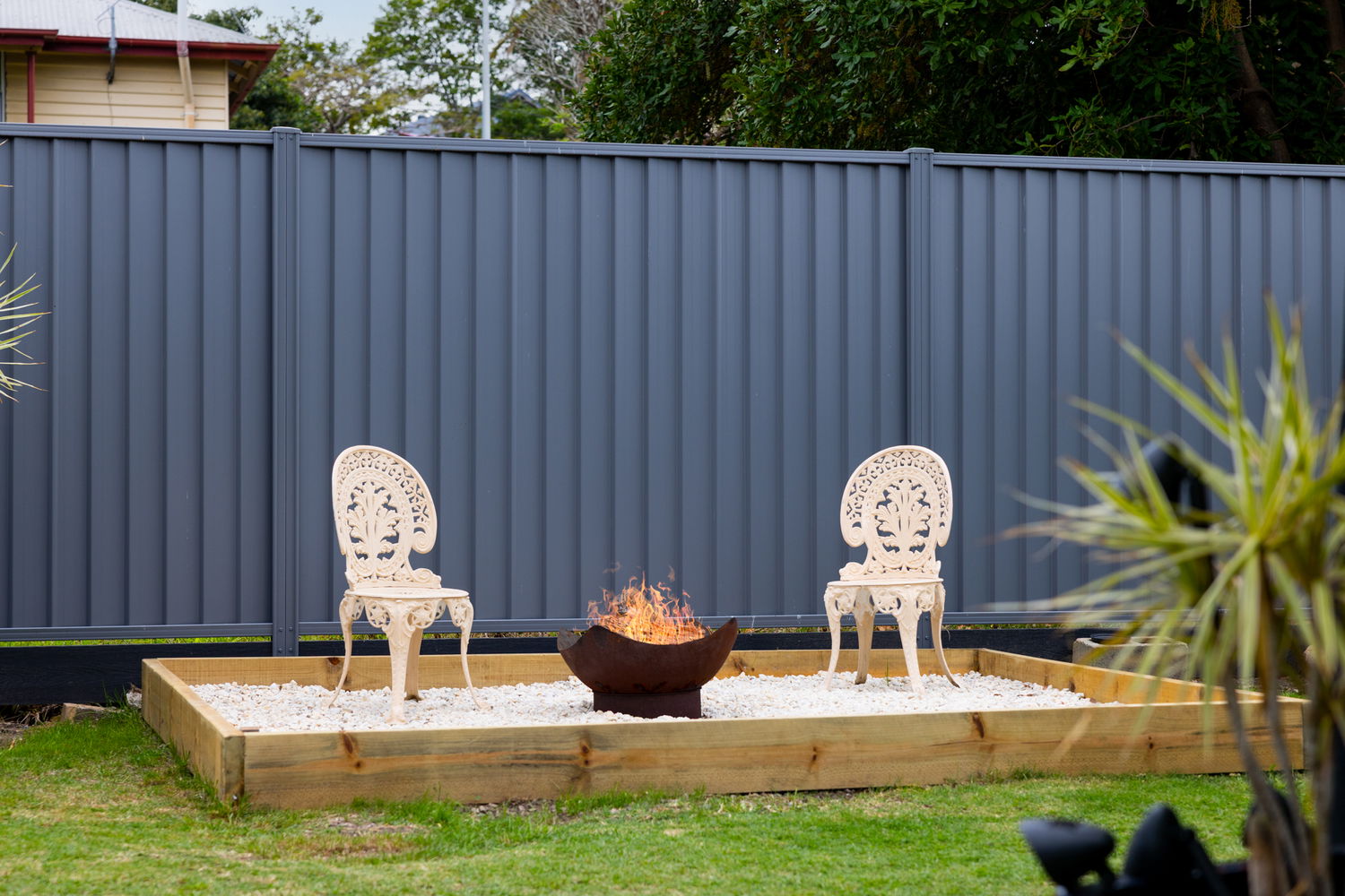 Outside, a covered patio seamlessly extends your living space, overlooking the spacious backyard — a true highlight featuring a dedicated firepit area, perfect for entertaining friends or enjoying cozy evenings under the stars. Situated in the backyard are two well-sized sheds, providing ample storage or workshop space to suit your needs.