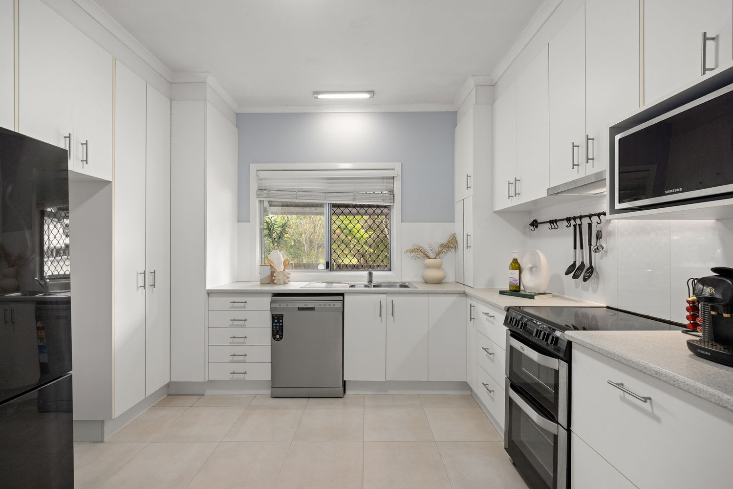 The ample-sized kitchen is a true hub for home chefs, thoughtfully designed to combine functionality with style. It offers generous bench space that makes meal preparation effortless, while the abundant cabinetry provides plenty of storage. Equipped with a dishwasher, the kitchen ensures easy cleanup, allowing you to spend more time enjoying meals and less time on chores.