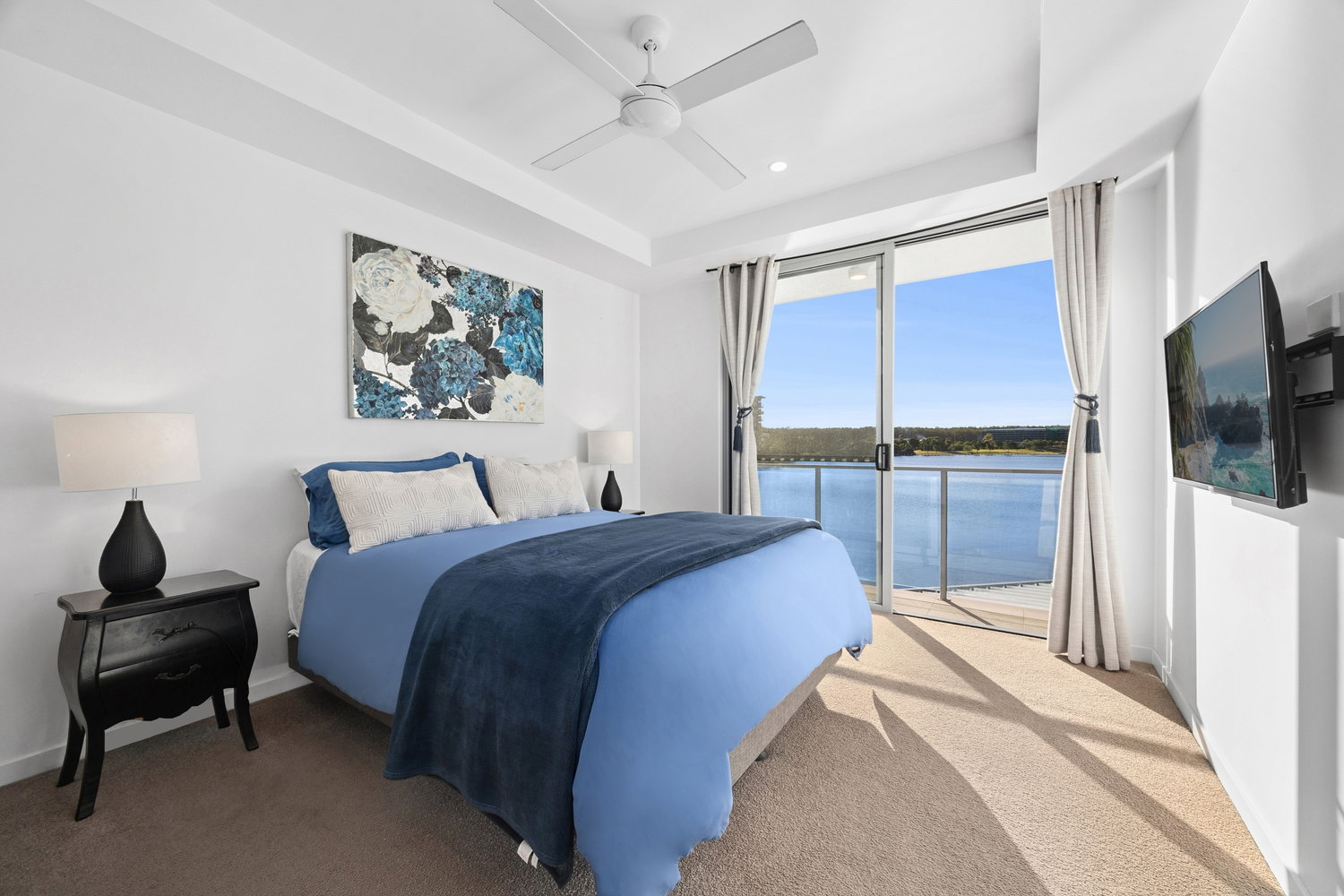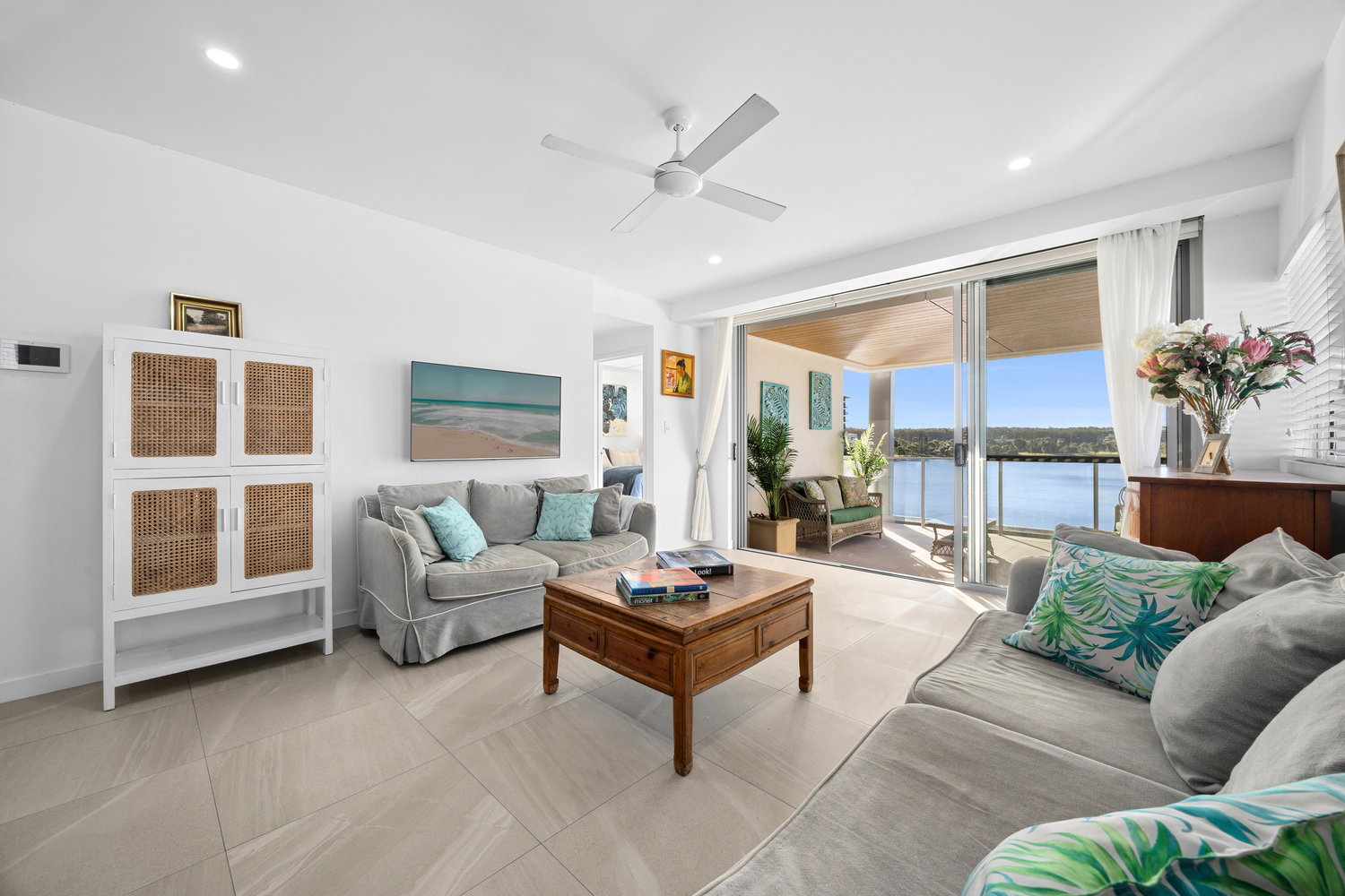 The open‑plan living and dining zone flows seamlessly to a large covered balcony, capturing breathtaking elevated views across the water. Offering a refined yet low‑maintenance lifestyle, this residence delivers the waterside living experience so many aspire to, yet few ever secure.