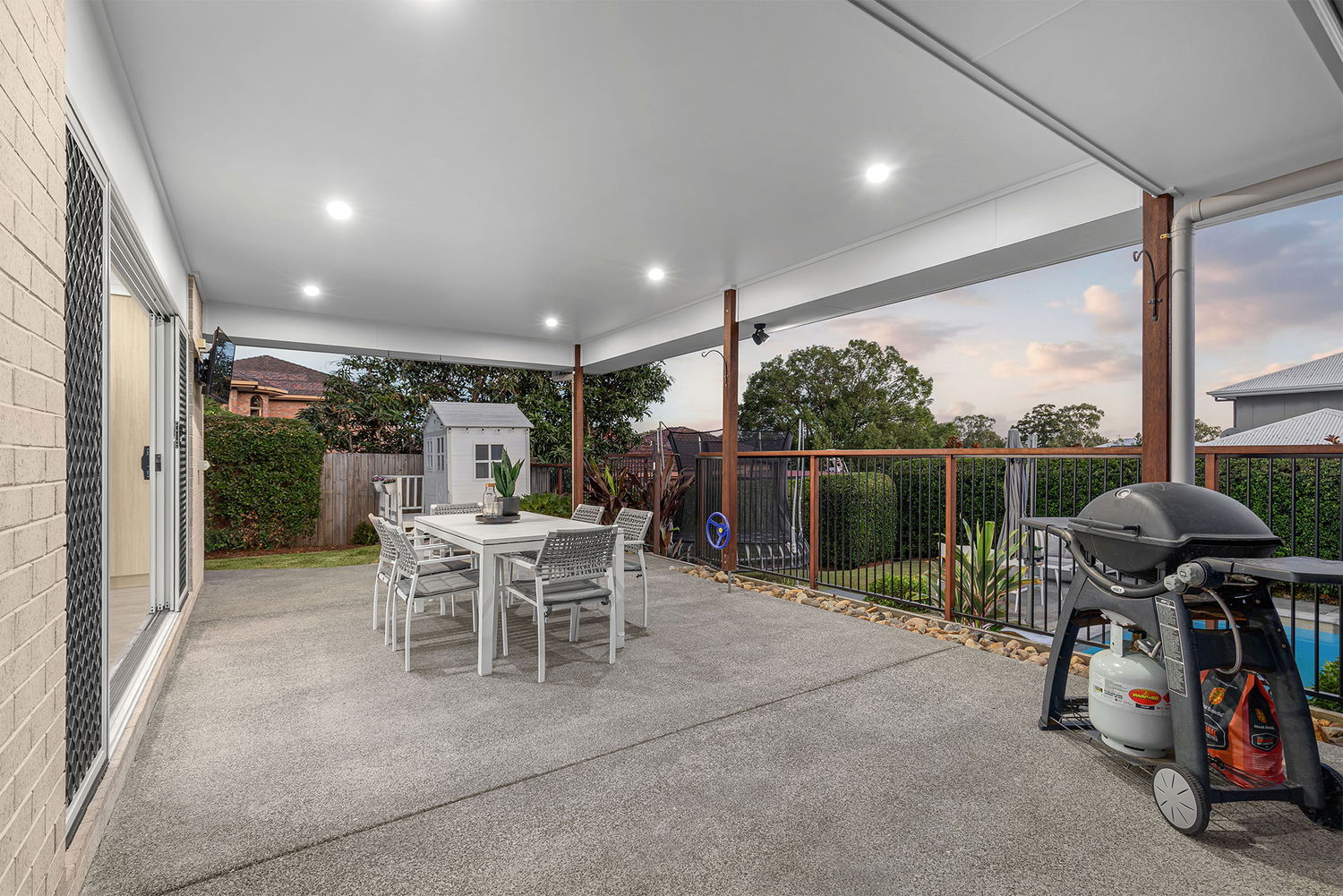 The yard is fully fenced in two sections, offering flexibility for pool safety and dedicated play areas, making it ideal for active children and relaxed family living. A charming cubby house and sandpit further enhance the home’s family appeal.