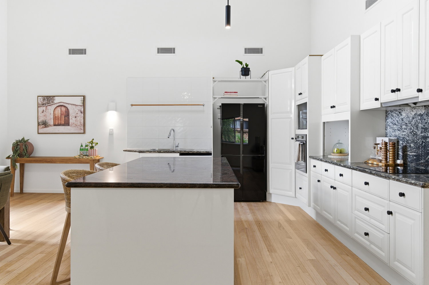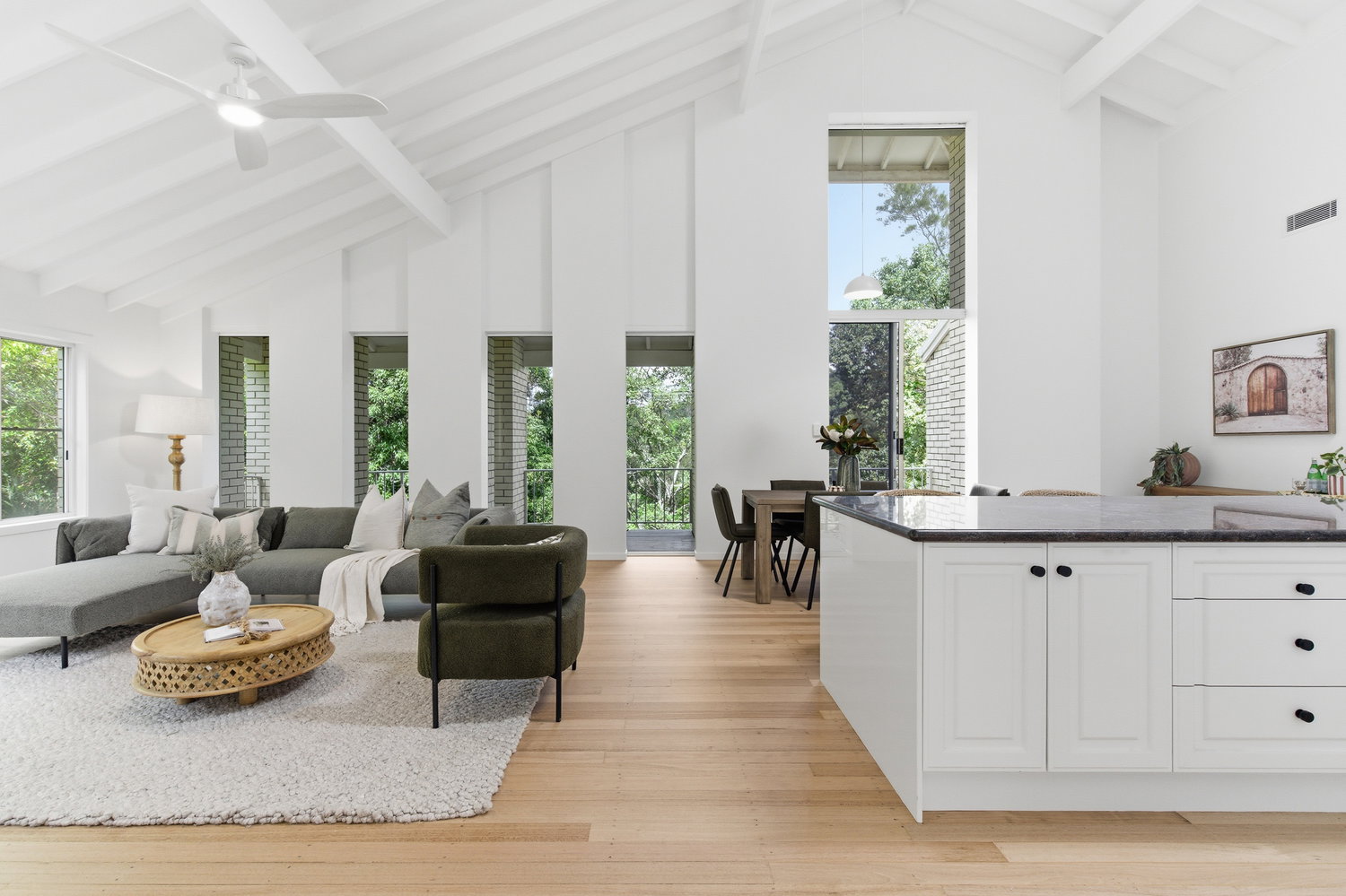 Upstairs showcases warmth and character with high ceilings, exposed rafters, skylights and stunning timber flooring. The light-filled living areas flow seamlessly to an expansive deck overlooking the water, creating the perfect space to relax or entertain. The well-considered floorplan includes multiple bedroom options, including two potential master suites.