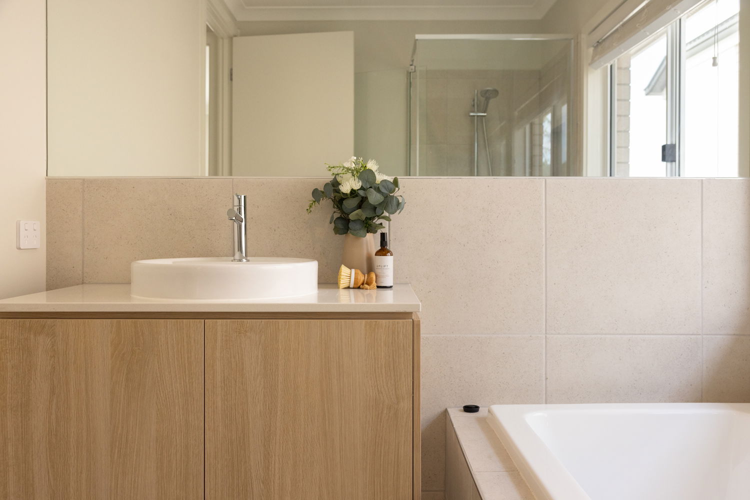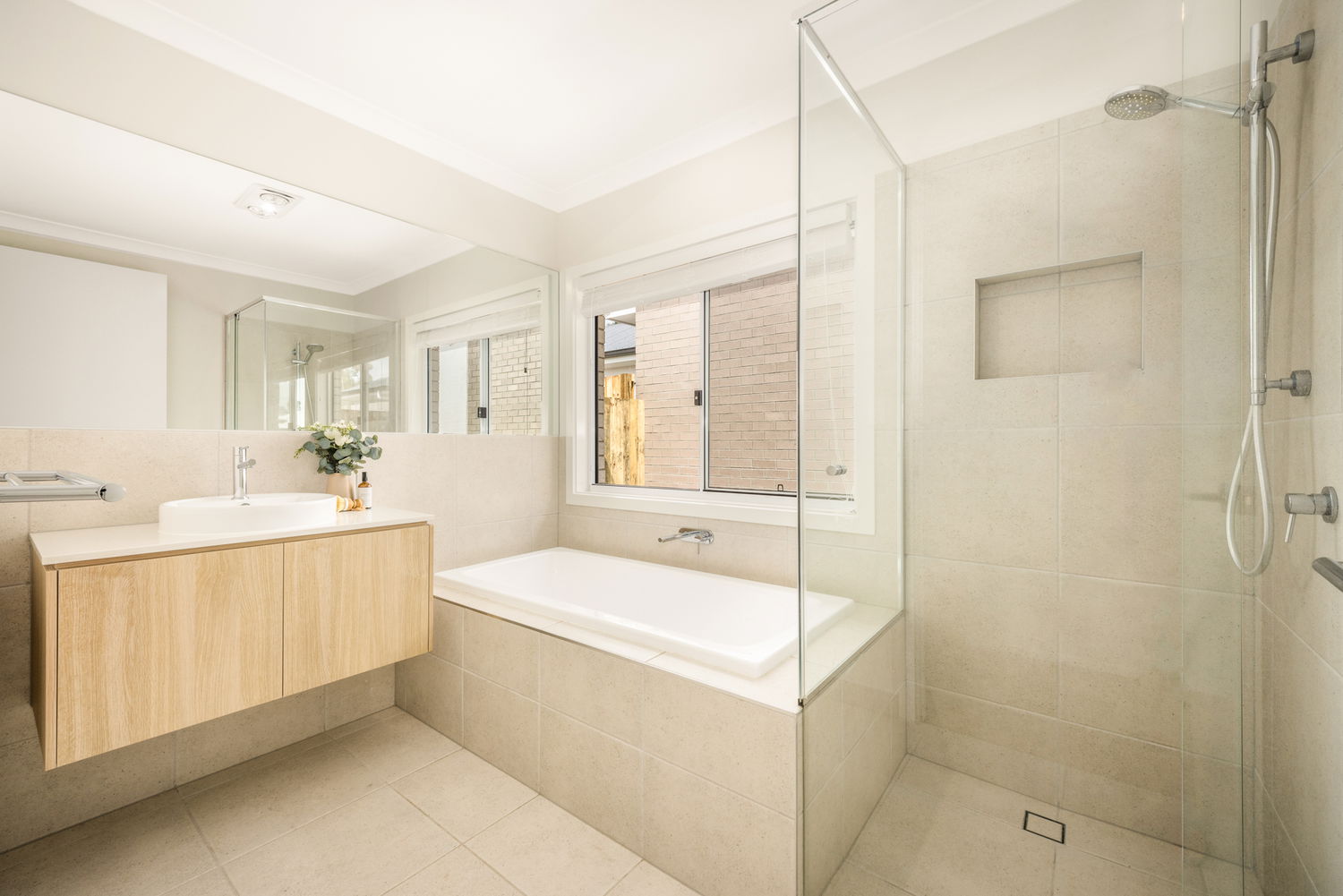 :: Three additional bedrooms with built-in robes serviced by the family bathroom, consisting of separate shower and bathtub configuration.
