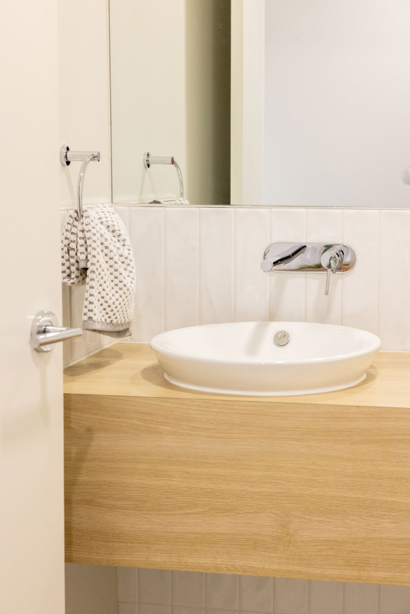 :: Powder room for family and guests conveniently tucked away and linen storage all close to bedrooms