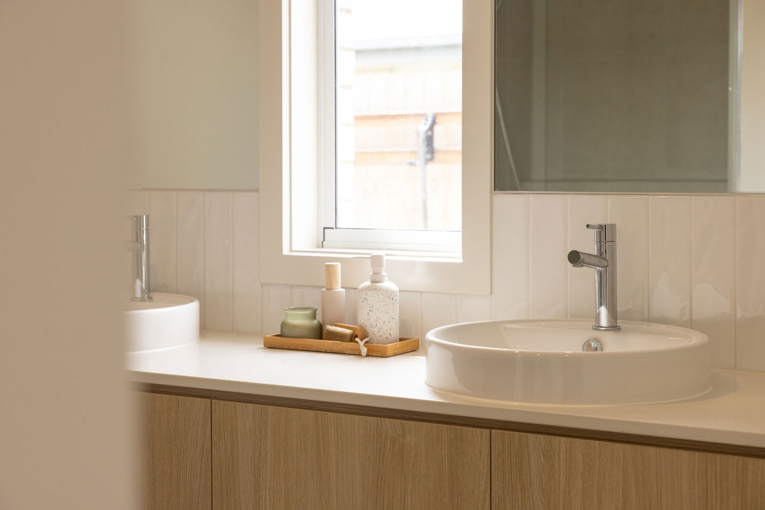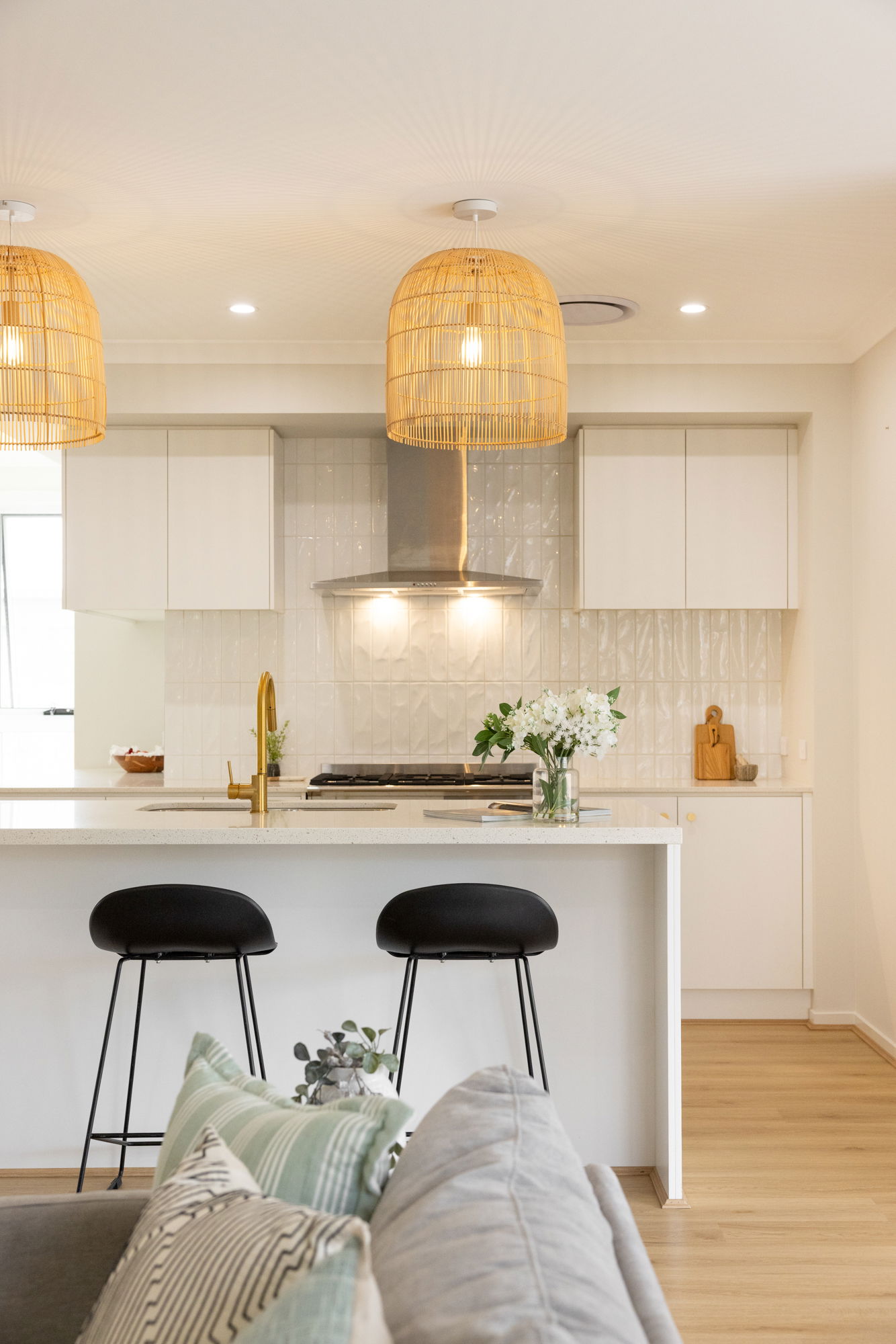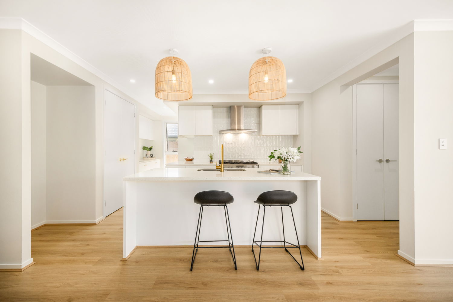 The on-trend colour scheme used to highlight the outside of the home continues throughout the inside with a mix of soft neutral tones to highlight the luxurious finishes throughout.