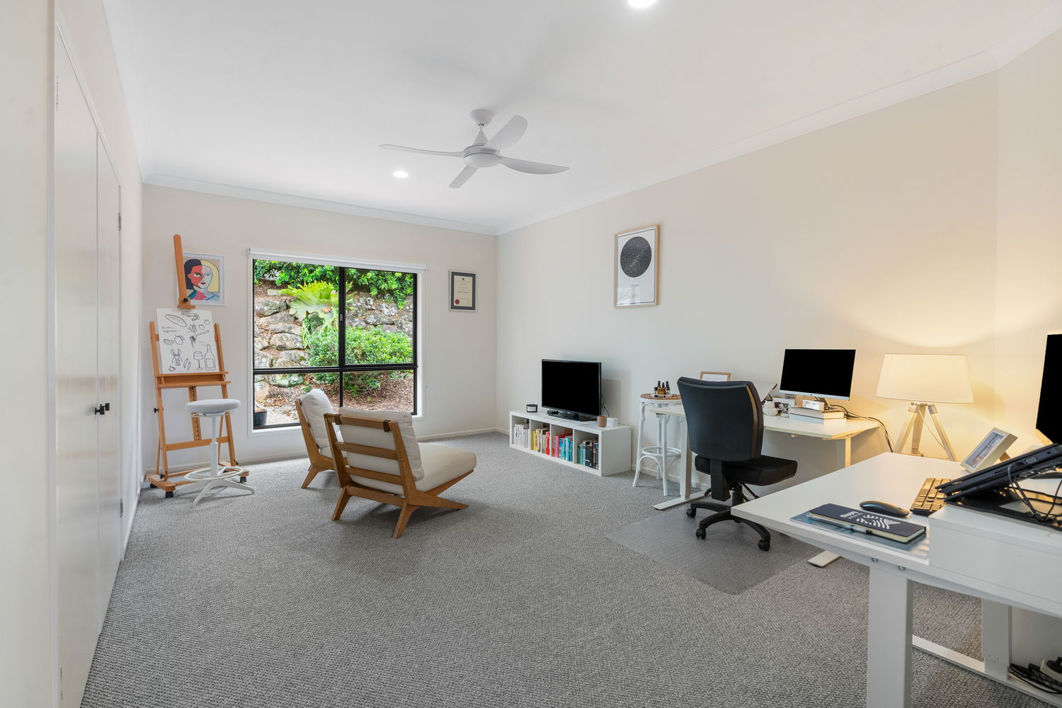 From the moment you arrive, the street presence is impressive. The freshly painted roof, fences and posts, combined with beautifully maintained low-maintenance landscaping, create a welcoming first impression. Positioned on a corner block with only one direct neighbour, the home enjoys an enhanced sense of privacy and space that is rarely found. Properties of this scale all on one level are extremely uncommon in Bilambil Heights, particularly when combined with such stunning valley views.