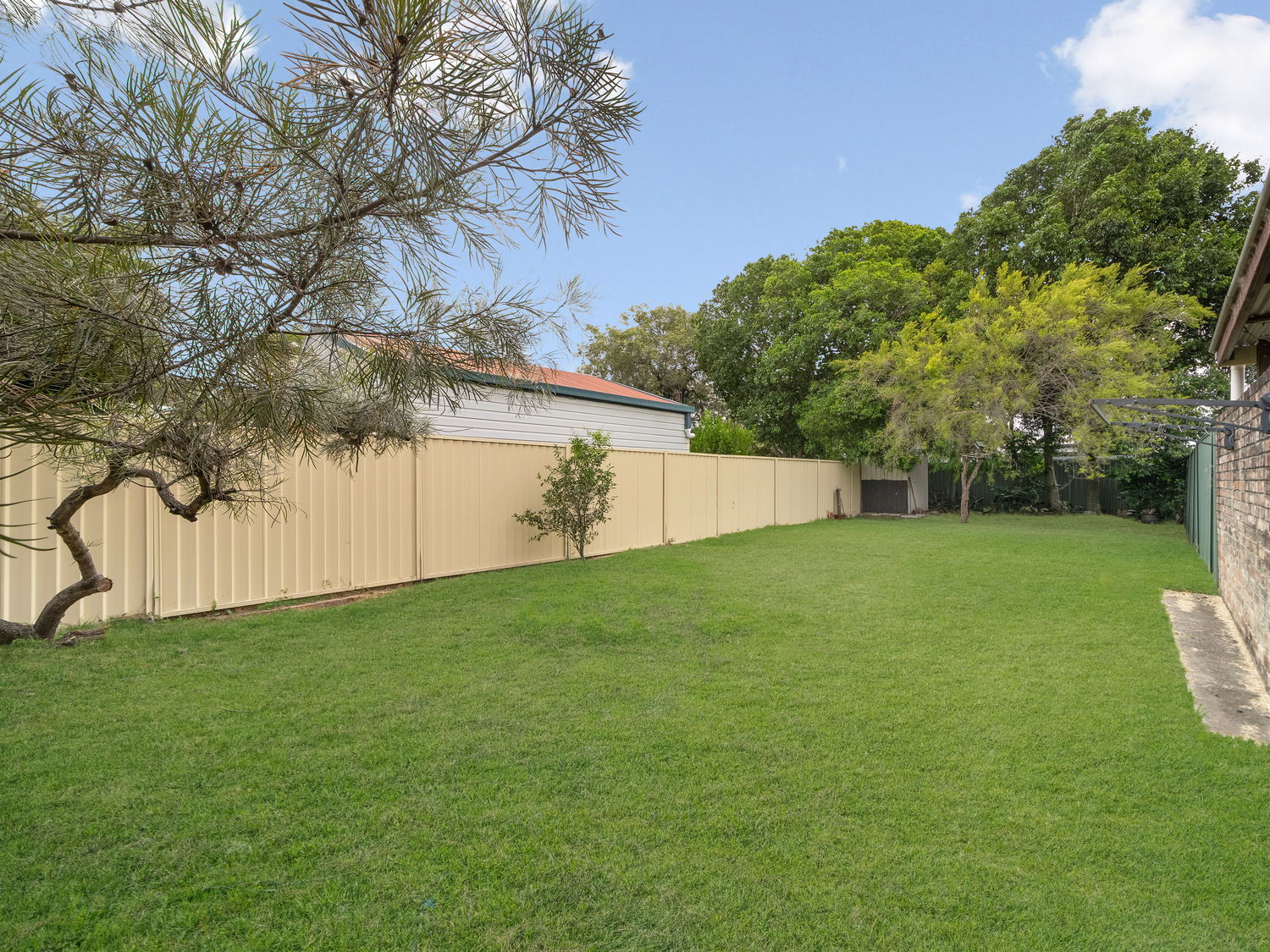 The backyard offers a private and easy-care outdoor space, perfect for both relaxation and entertaining. With a level lawn area framed by established greenery, there’s plenty of room for children and pets to enjoy while remaining low maintenance. The rear undercover deck overlooks the backyard, creating the perfect vantage point to host weekend barbecues, enjoy your morning coffee, or simply unwind while keeping an eye on the kids at play.