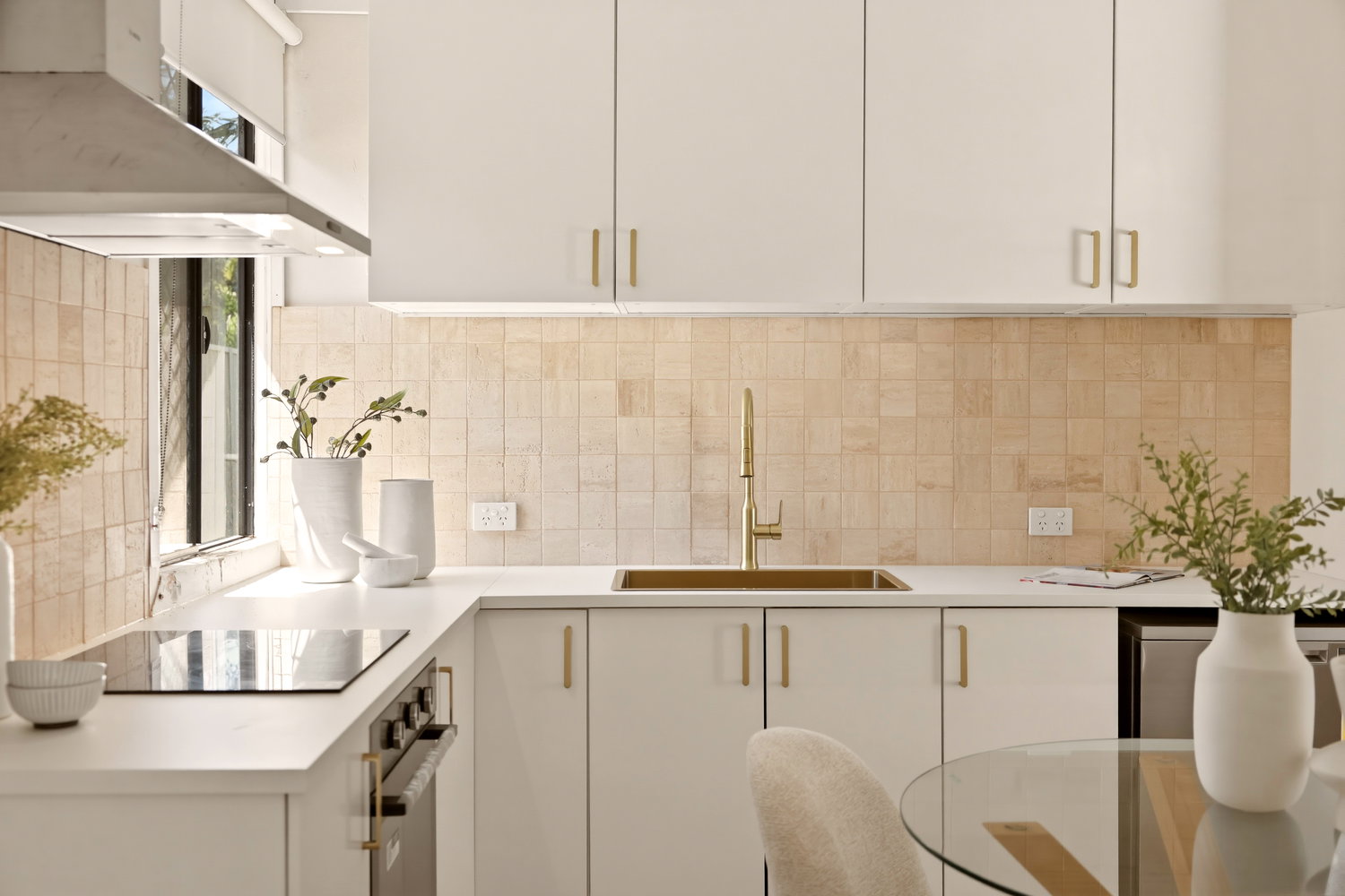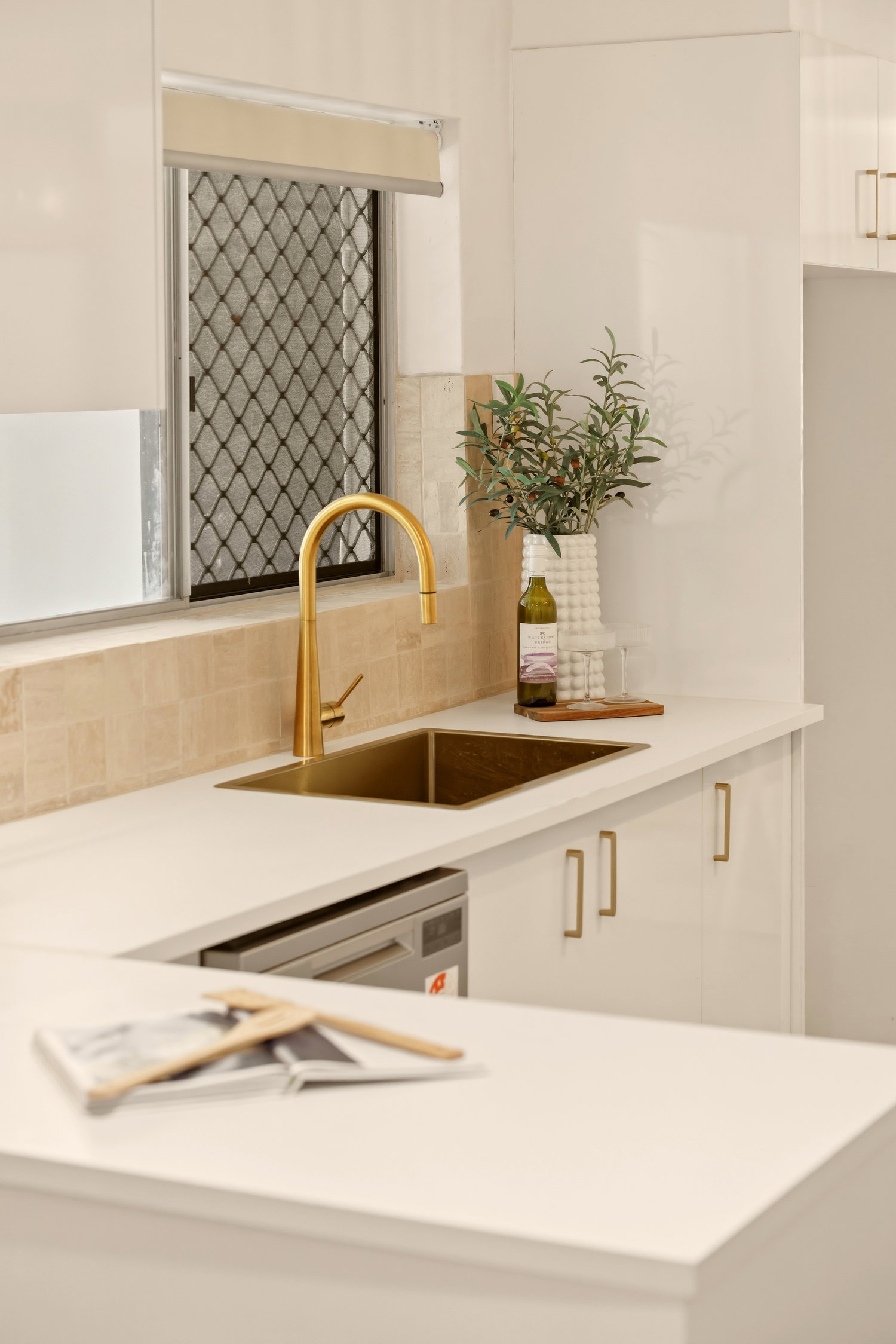 • Modern kitchen with breakfast bar, gas cooktop and dual sinks