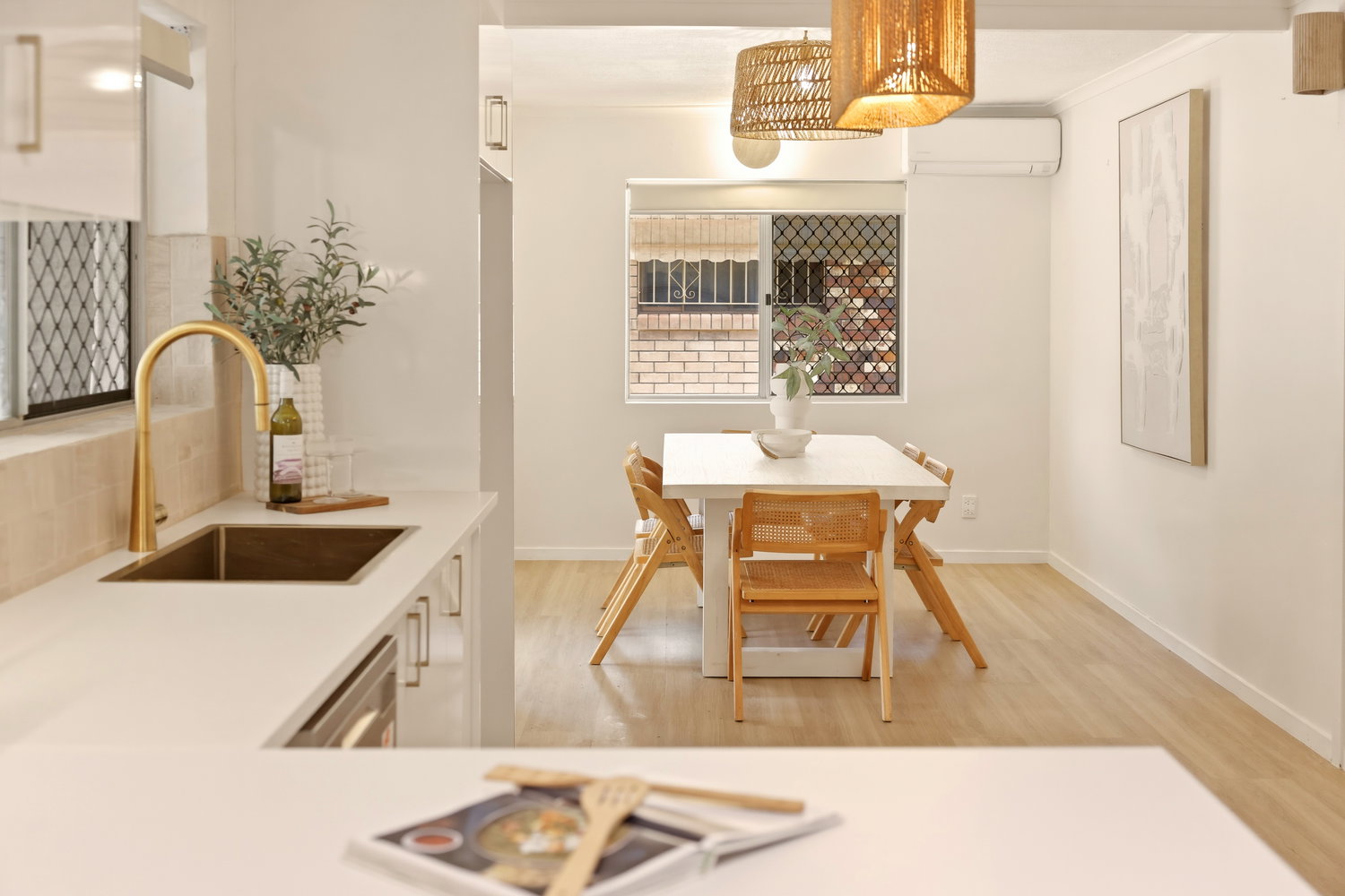 Inside, the home offers a practical and comfortable layout where the bedrooms are thoughtfully positioned to provide privacy for everyone in the household. At the heart of the home, the kitchen and dining area create a central hub for everyday living, featuring a modern kitchen complete with breakfast bar, dual sinks, a large gas cooktop and plenty of bench and cupboard space for those who love to cook and entertain.