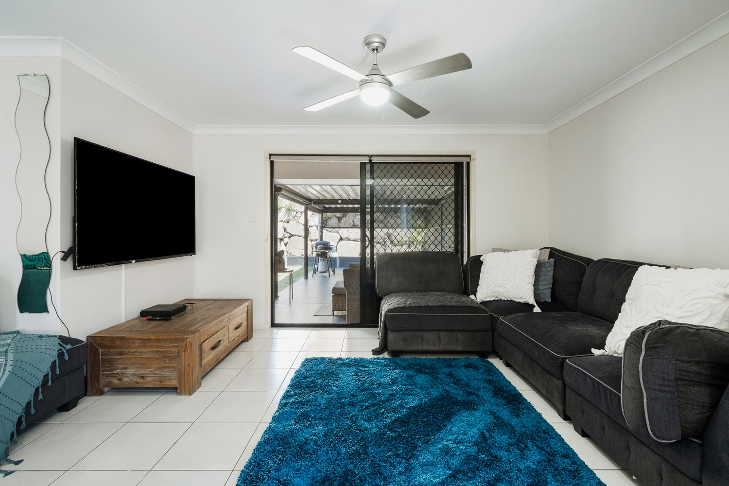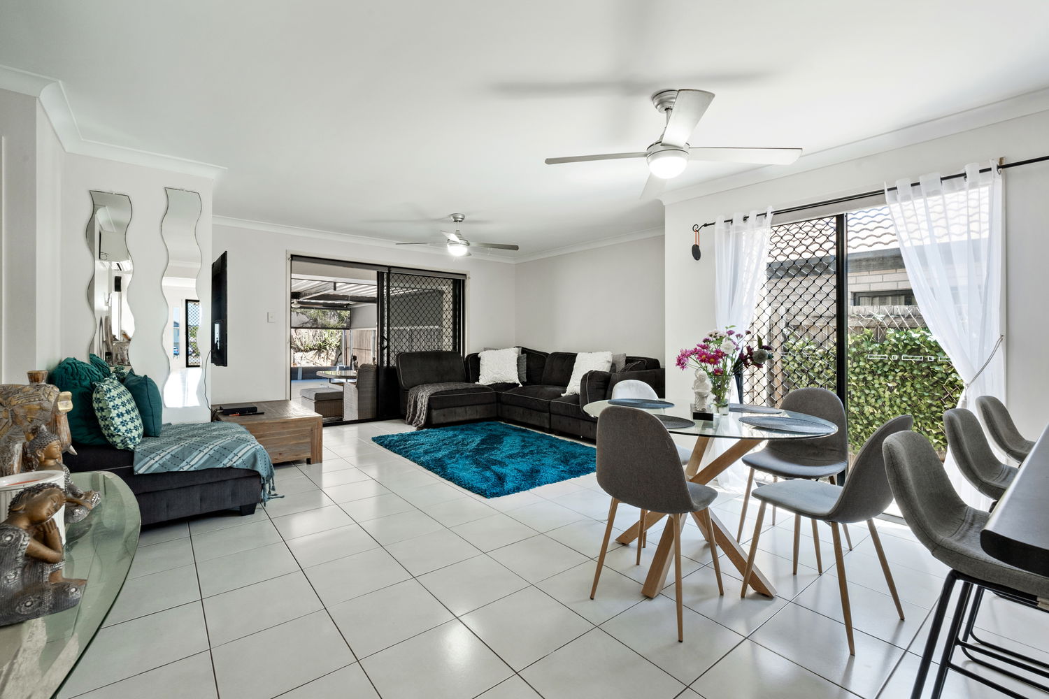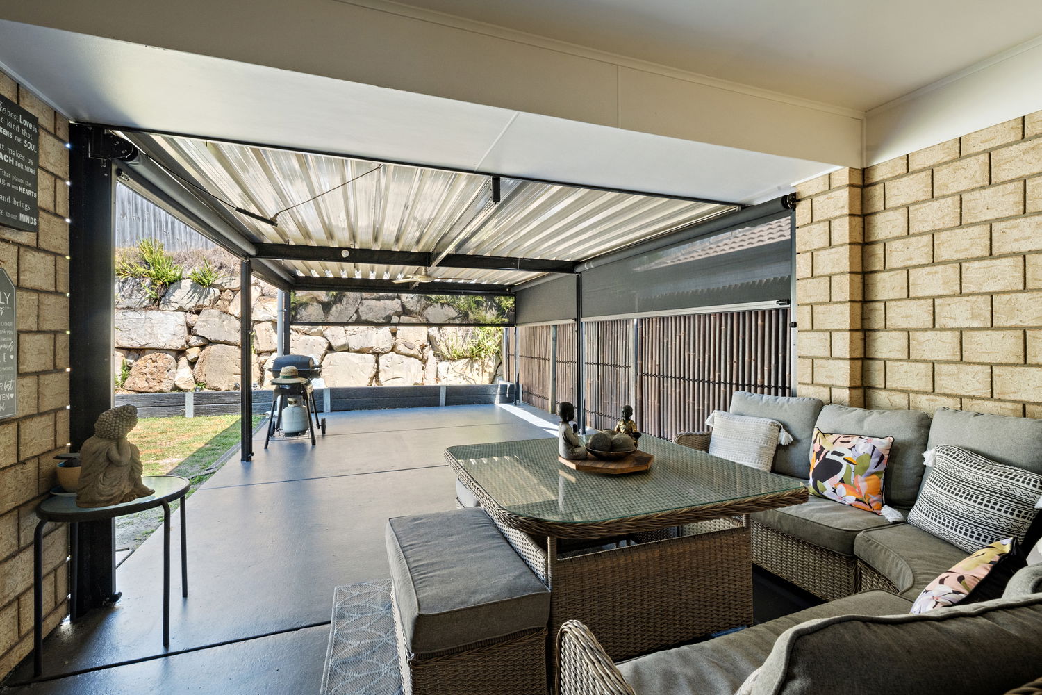 The living area flows seamlessly out to the lovely entertainment area and gorgeous backyard.