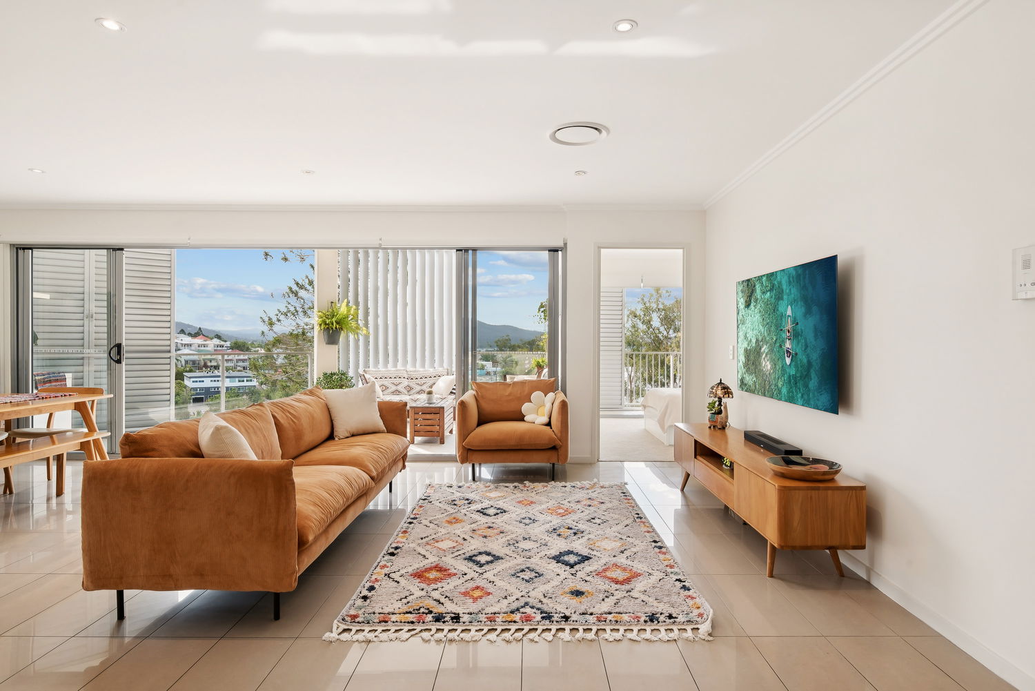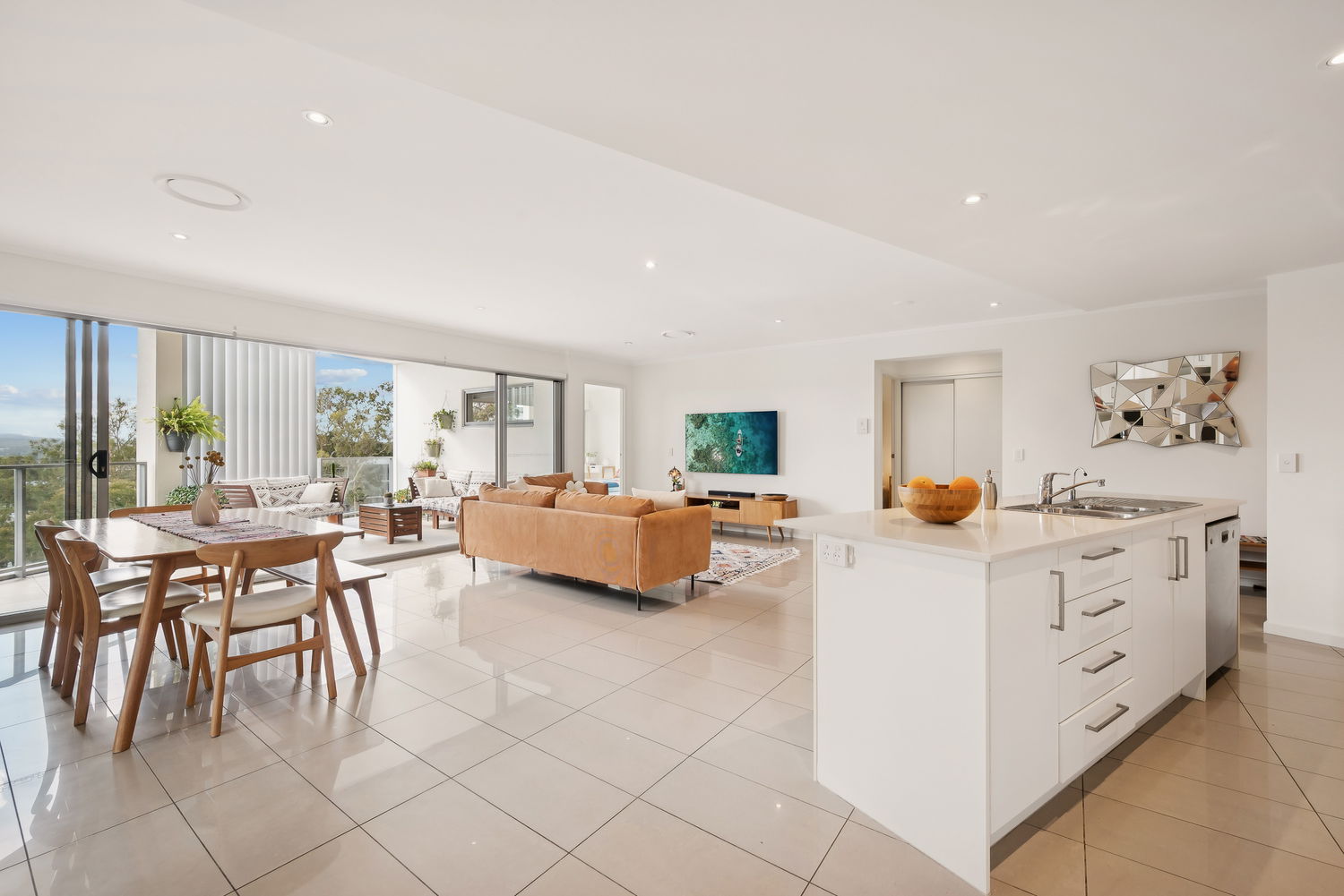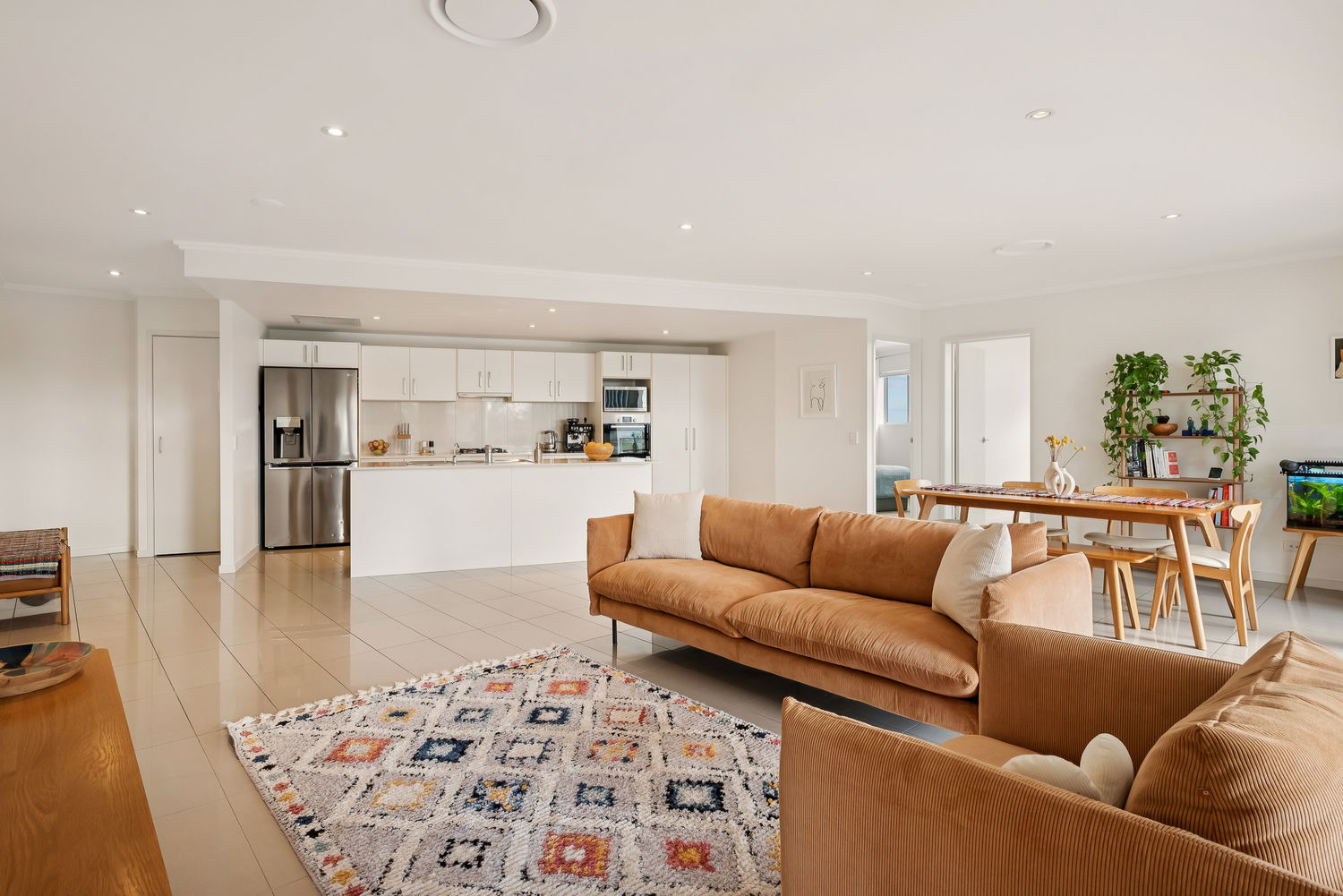 – Light-filled open-plan living and dining with low-maintenance tiled flooring