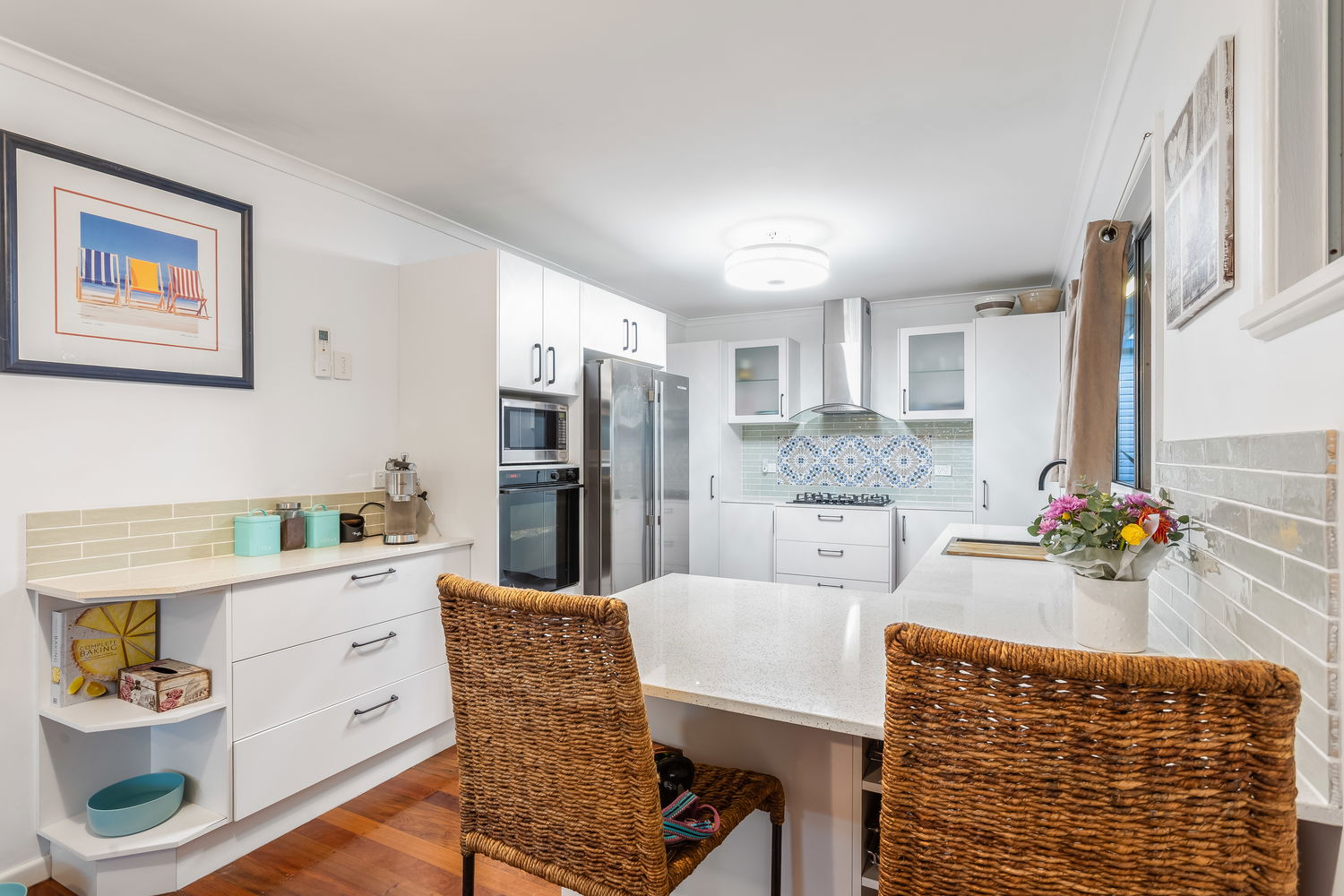 – Stone benchtops and breakfast bar