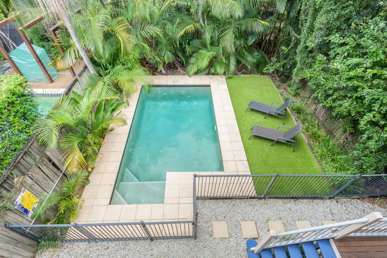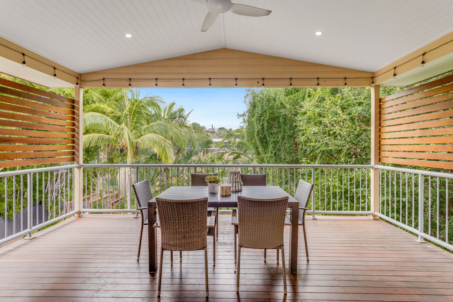 From here, floor-to-ceiling sliding glass doors open onto an elevated, covered deck, creating a natural extension of the living and entertaining area capturing breezes, pleasant neighbourhood views while overlooking the private backyard and sparkling in-ground swimming pool below.