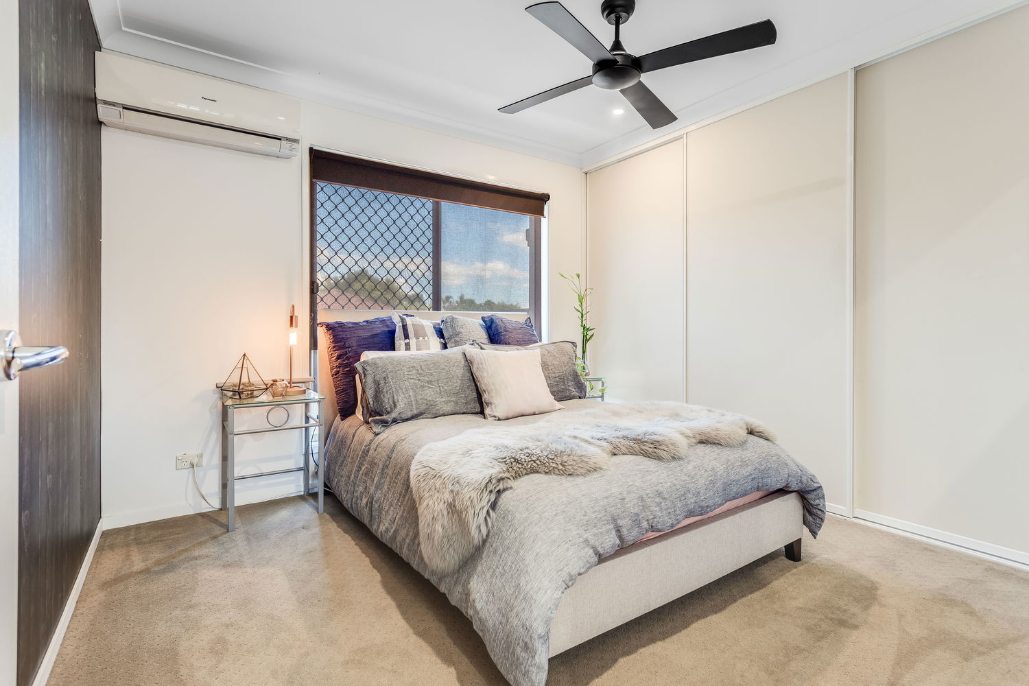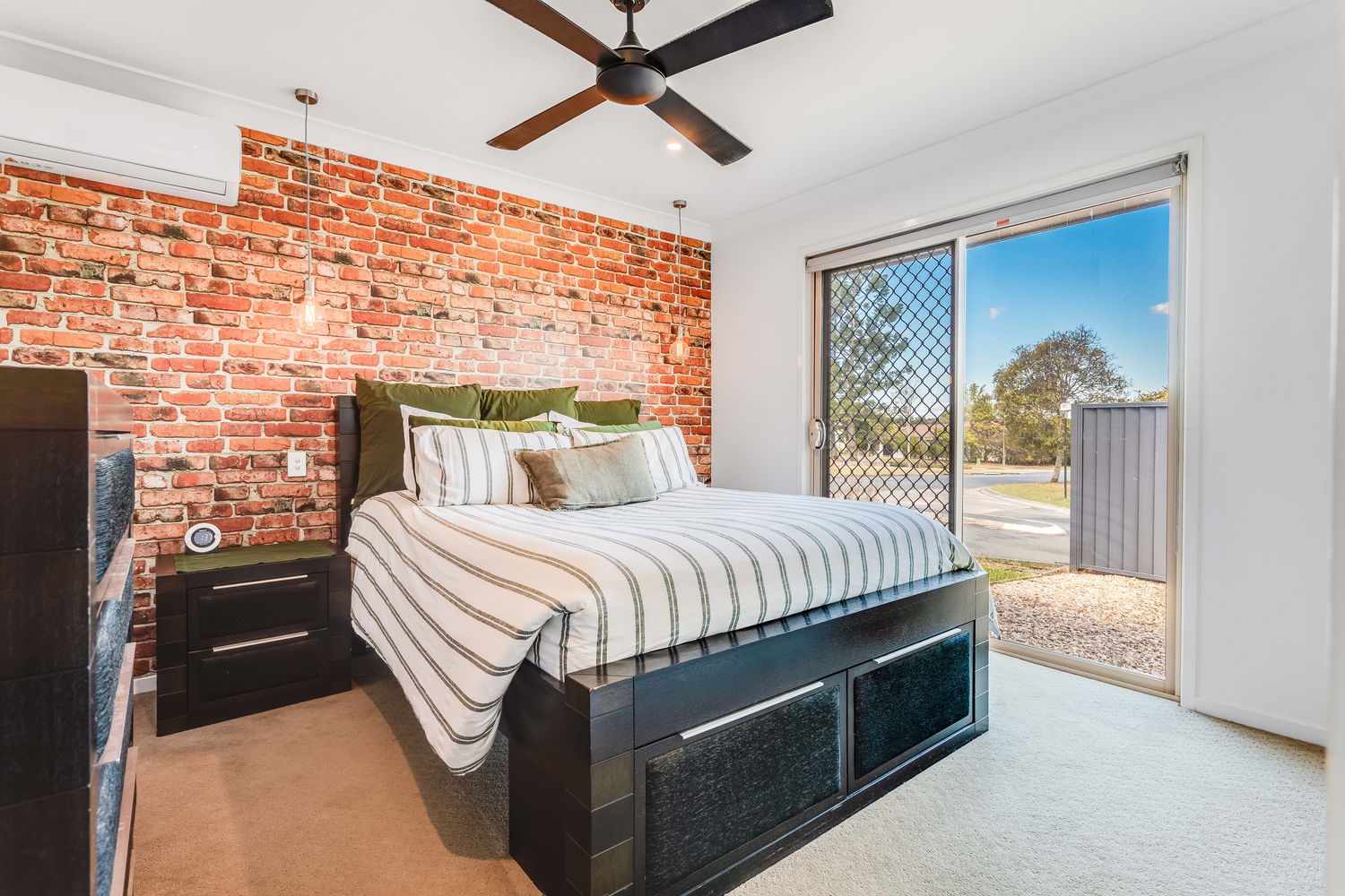 – Three bedrooms, each with built-in wardrobes, carpet and ceiling fans