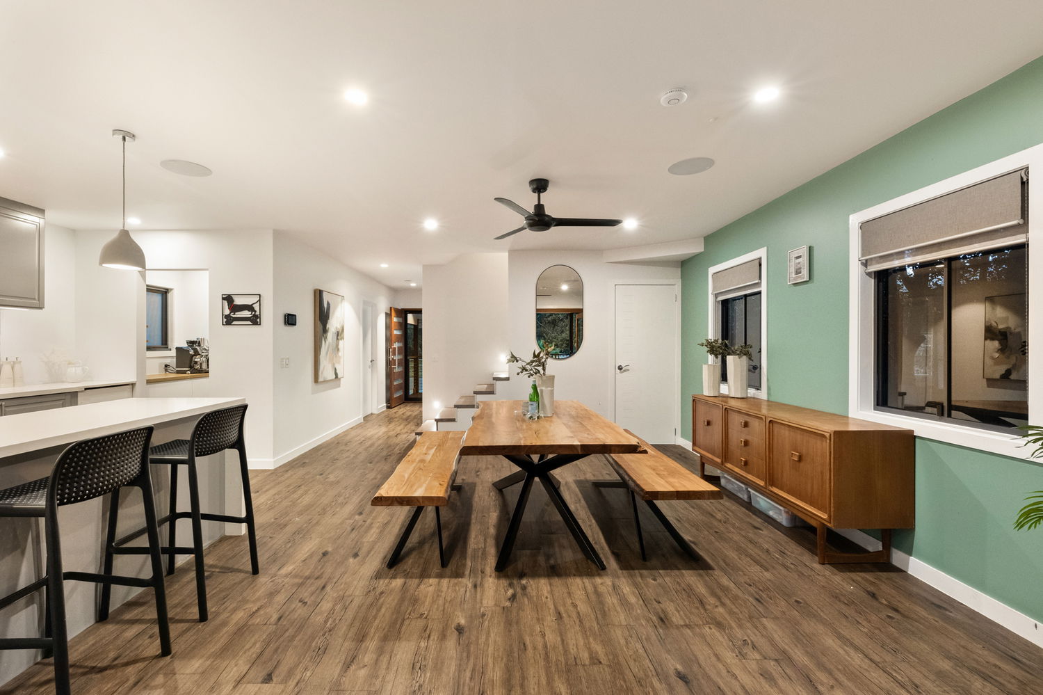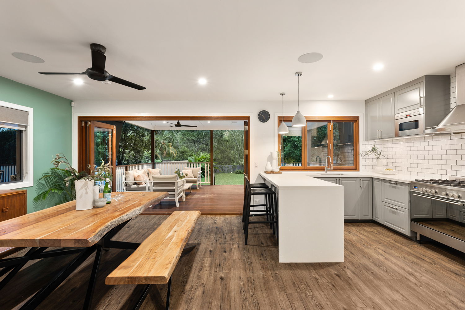 Adjacent to the kitchen, the open-plan dining area flows directly out through expansive bifold doors to your timber entertaining deck, creating a seamless indoor-outdoor lifestyle. This large deck is ideal for hosting family and friends, while enjoying the lush, private outlook — a true entertainer’s dream.