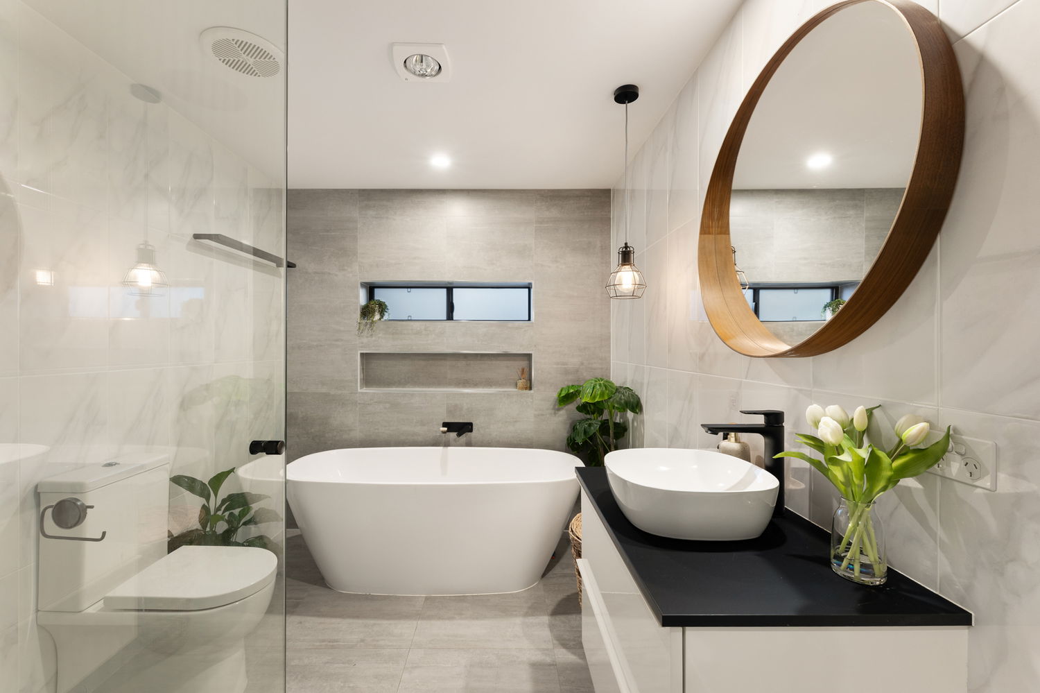 Of the remaining three bedrooms, two also feature walk-in robes, providing ample storage and a touch of added luxury. These bedrooms are serviced by a stunning central bathroom, fully tiled, with a walk-in shower, freestanding bathtub, and high-end fixtures.