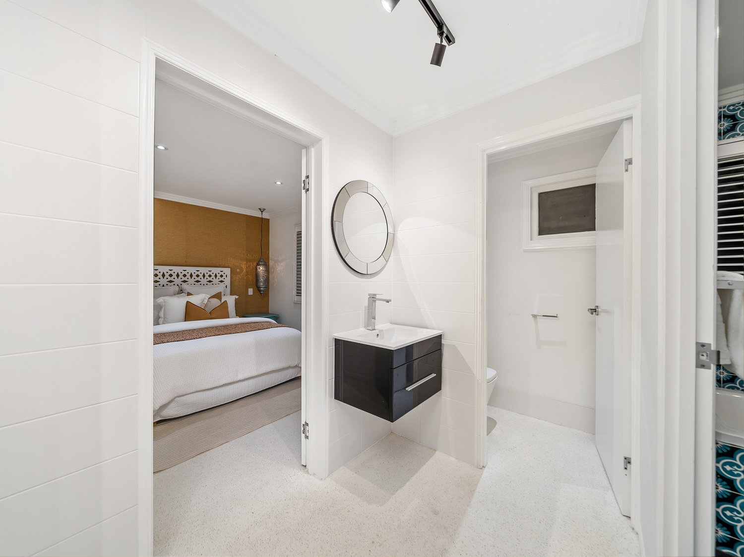 Accommodation on the upper level includes two well-proportioned bedrooms, including a master suite complete with walk-in robe and private ensuite. Additional bedrooms are serviced by a well-appointed main bathroom, all finished in a fresh, contemporary palette.