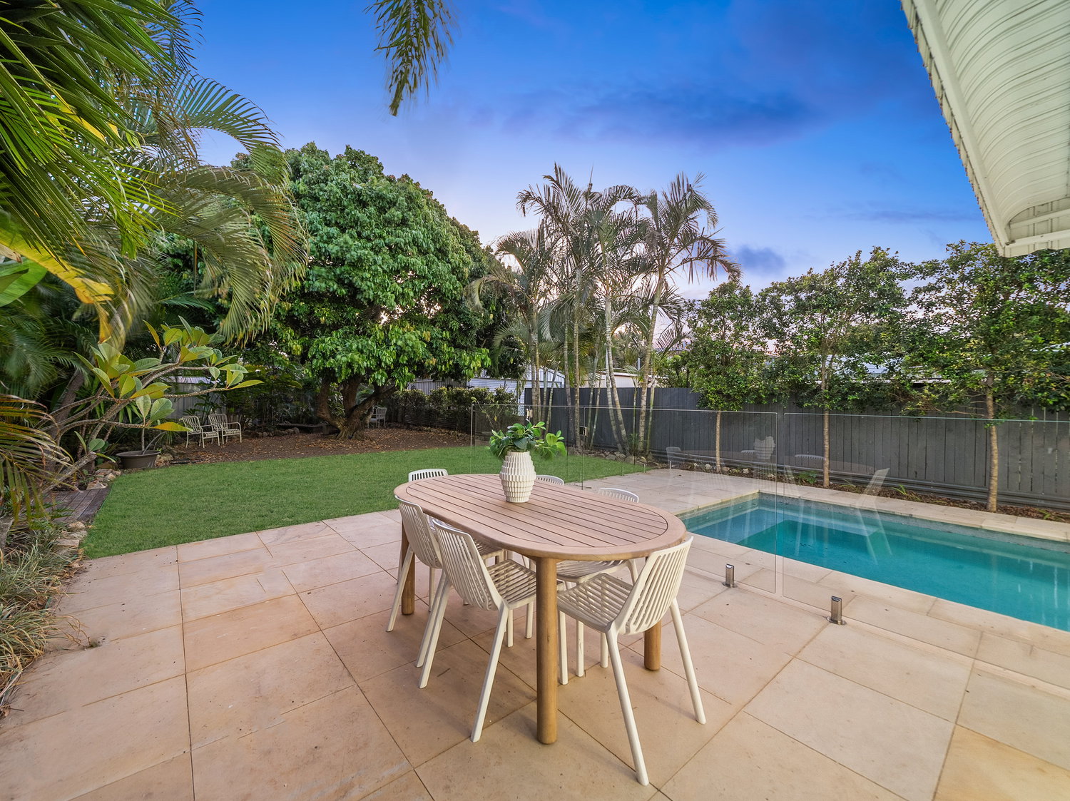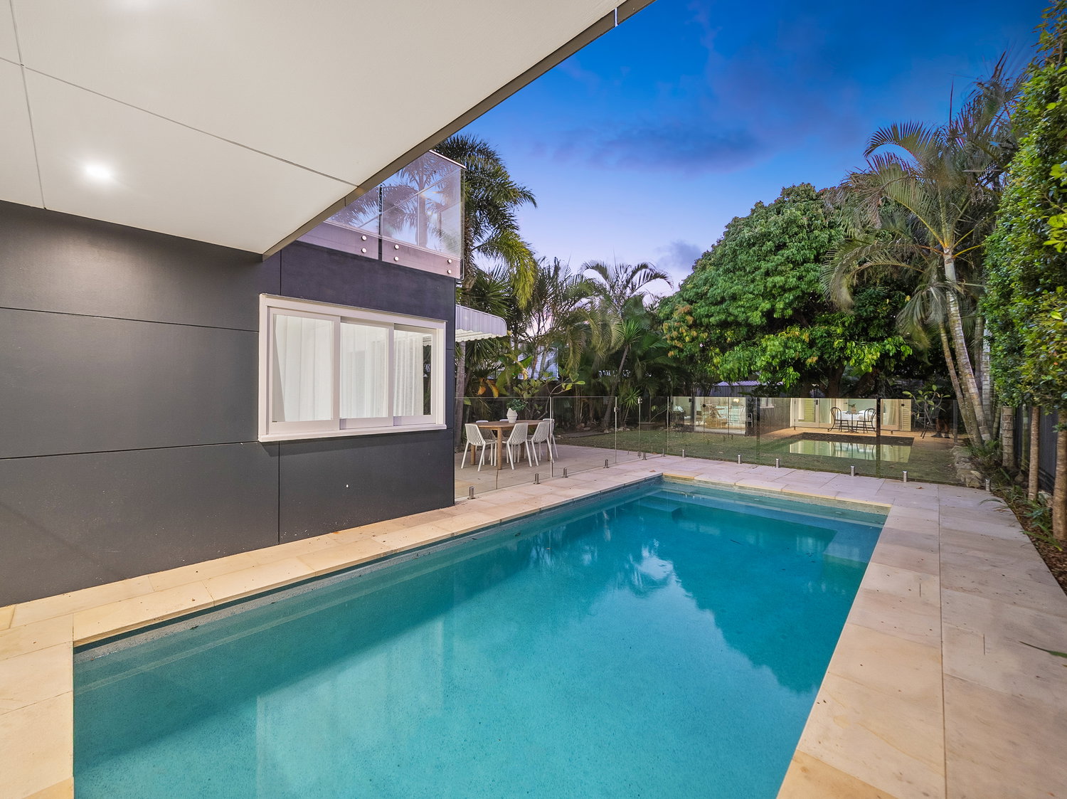 – In-ground swimming pool with glass fencing