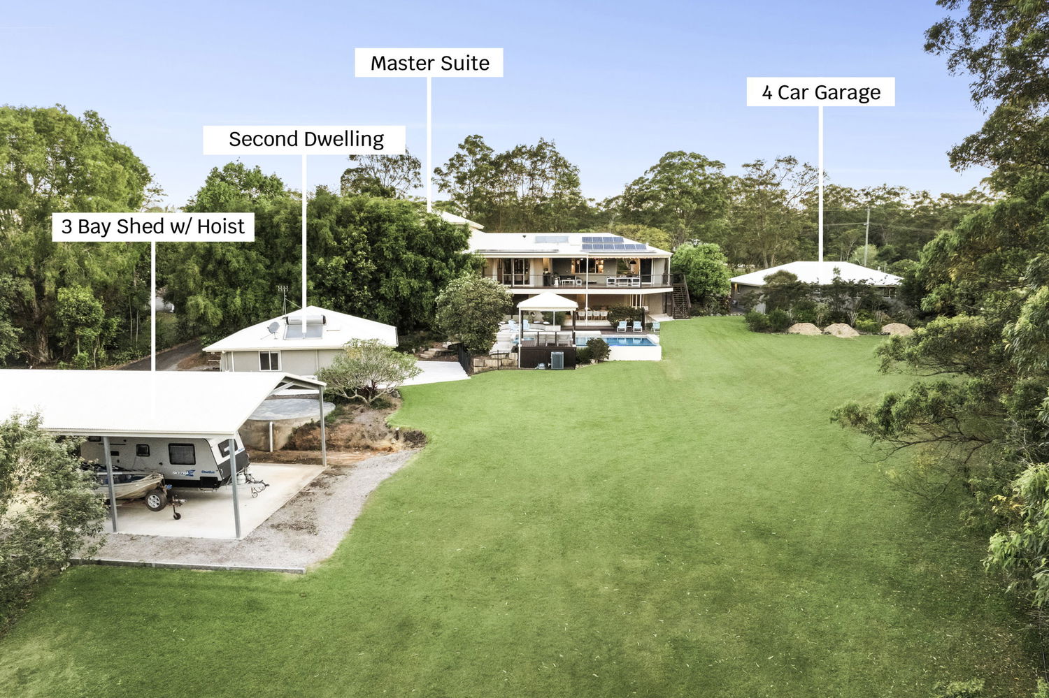 Privately positioned on a quiet cul-de-sac in coveted Doonan, this extraordinary 7,681 m² estate offers a rare combination of scale, flexibility, and timeless hinterland appeal. Set across two beautifully appointed dwellings and bordered by nature, this is a sanctuary of luxury living – ideal for large or multi-generational families, hobbyists, or those seeking space without compromise.