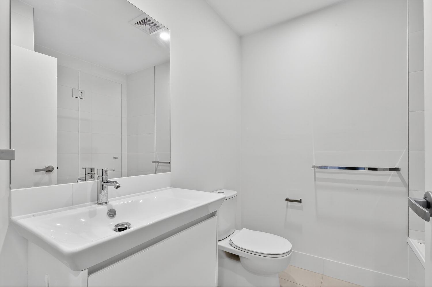 bathroom with a bathtub, a vanity toilet and plenty of linen storage is also located on the