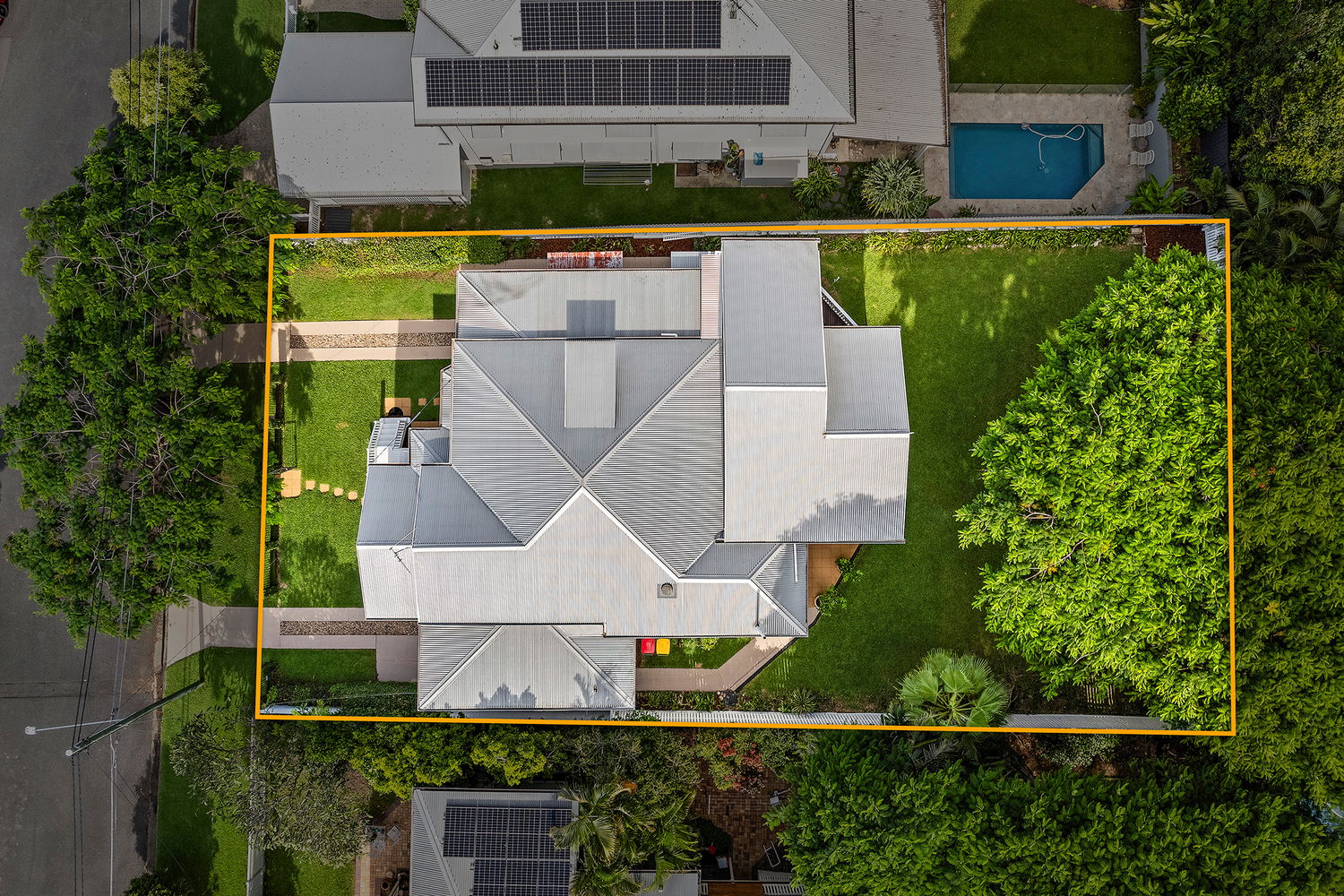 Convenient dual driveways spacious backyard, and shade from the beautiful Poinciana Tree, Offering a unique blend of character and modern family comfort. Set on a generous 810m² block on 2 titles, this elevated residence enjoys a quiet, tree-lined street while still being close to all the amenities that make this sought-after area so appealing. Boasting 5 spacious bedrooms and 2.5 bathrooms leading to a secure backyard and gardens, this home has been thoughtfully designed to embrace the Queensland lifestyle. With plenty of room for family living and entertaining, this home perfectly balances its charm with today’s needs, offering both character and convenience.