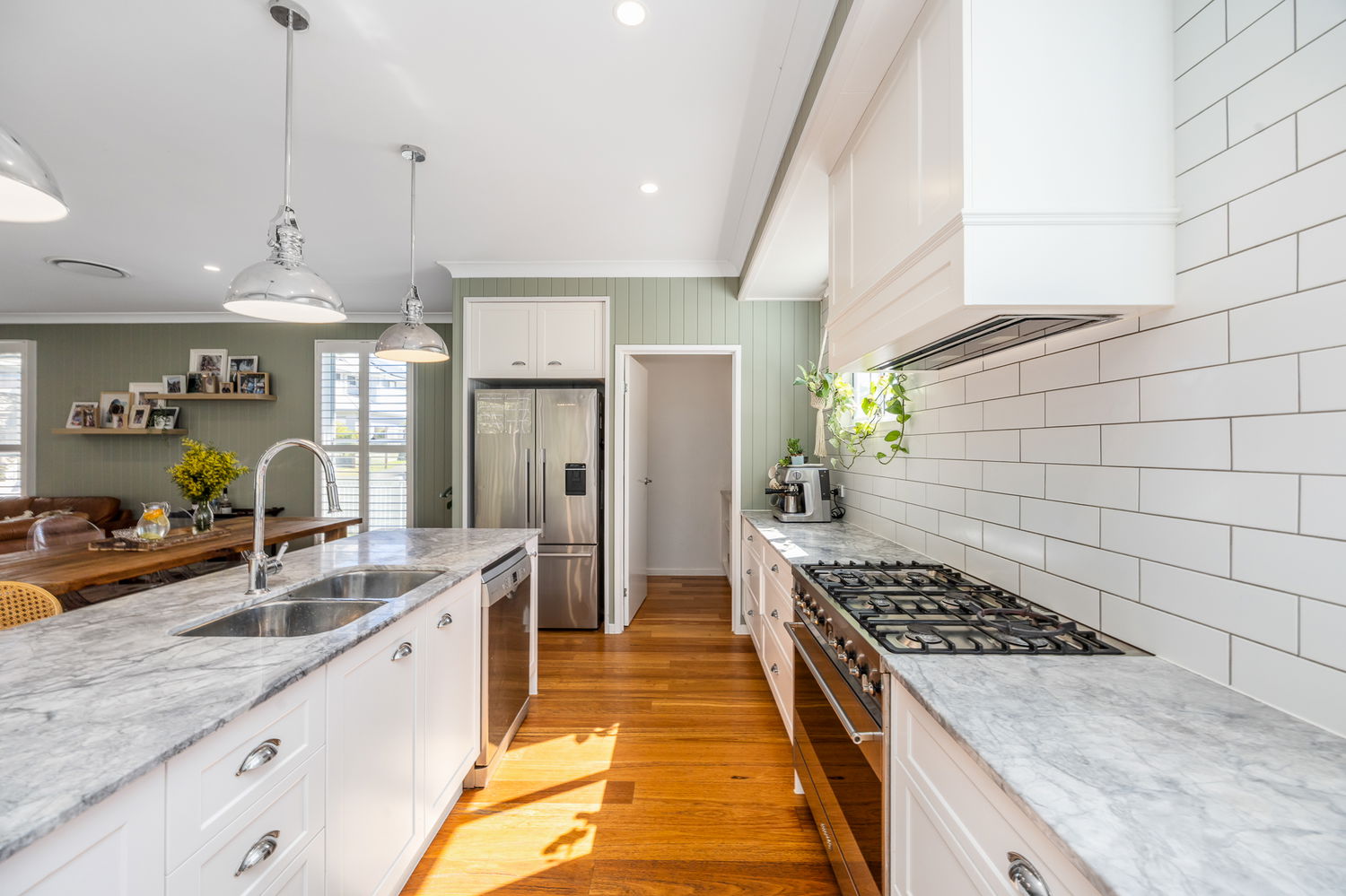 At the heart of the home is the gourmet kitchen — an entertainer’s dream featuring luxurious natural quartzite stone benchtops, an expansive breakfast bar, and ample bench space for preparing meals or gathering with family and friends. The walk-in pantry provides excellent storage, ensuring a clean, streamlined look is always easy to maintain.