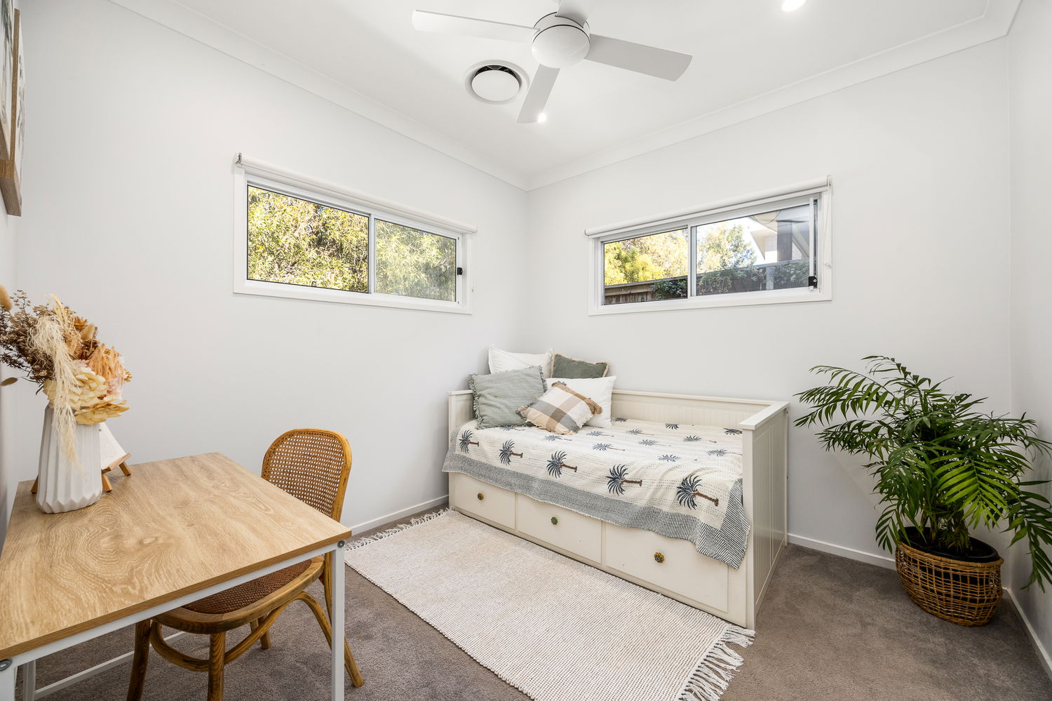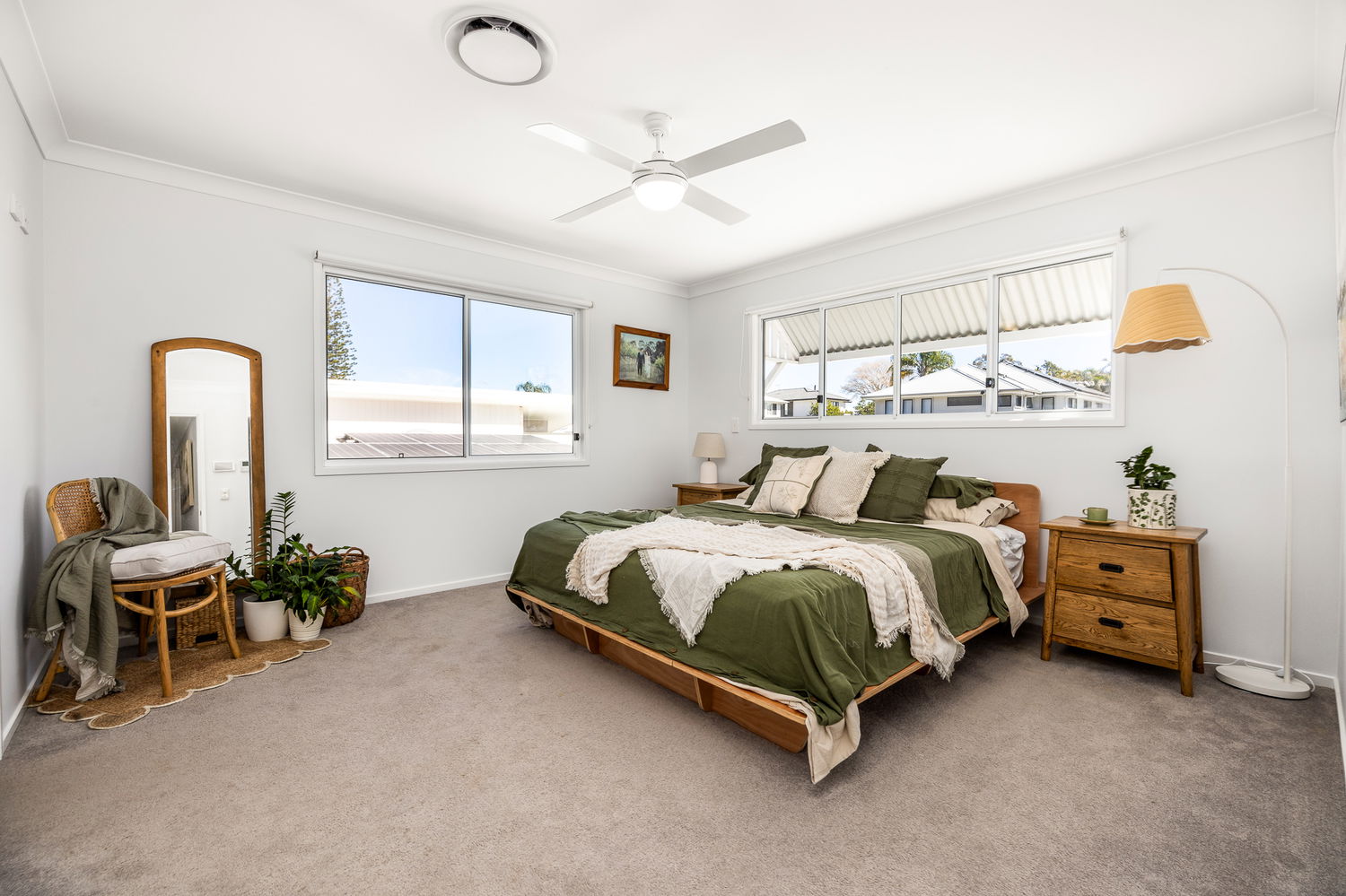Another two of the three remaining bedrooms also include walk-in robes, while the fourth enjoys a built-in robe — all rooms boasting large windows, ducted air-conditioning, and ceiling fans to ensure year-round comfort.