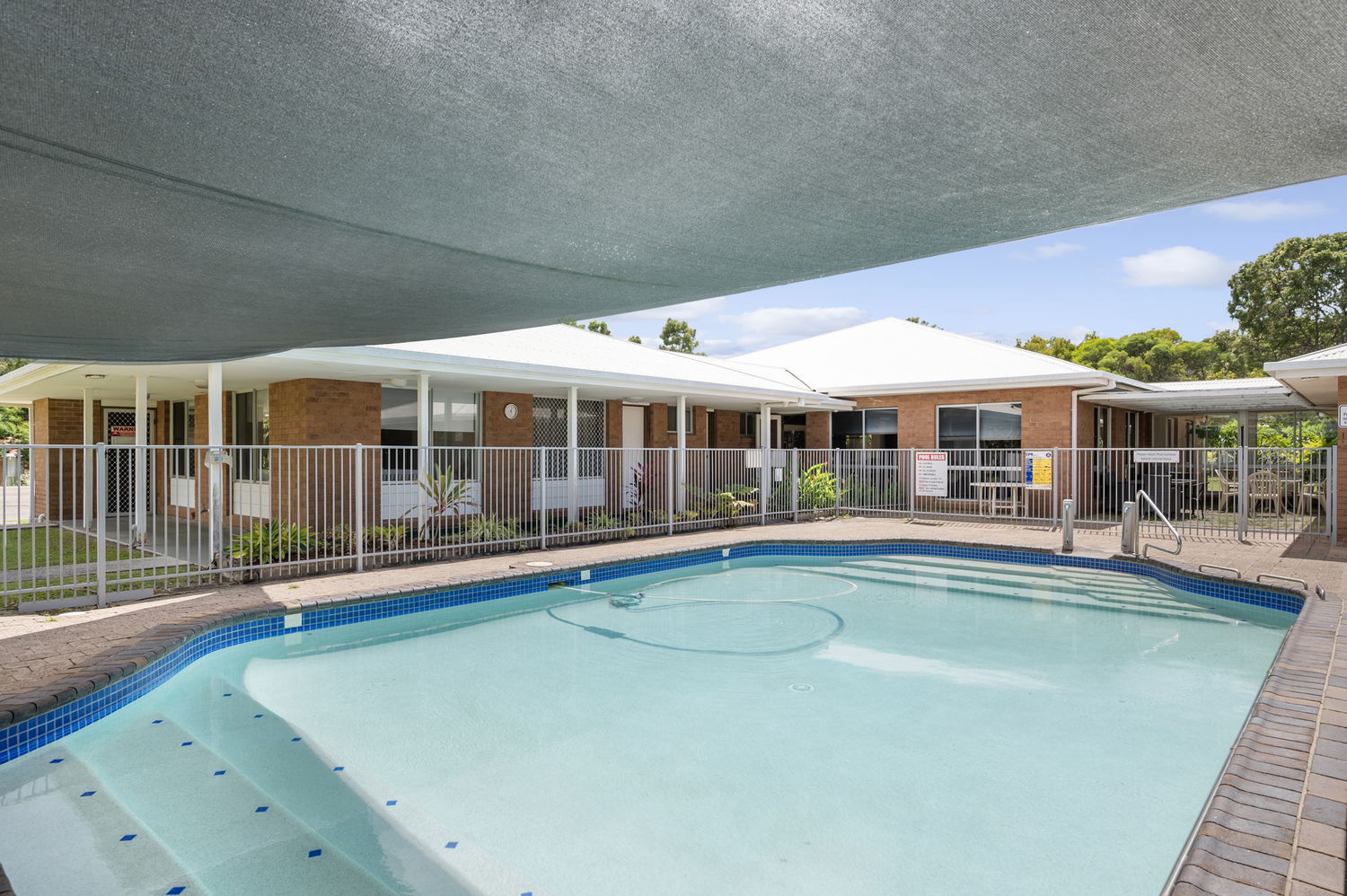 Resort-style complex facilities including swimming pool and BBQ area