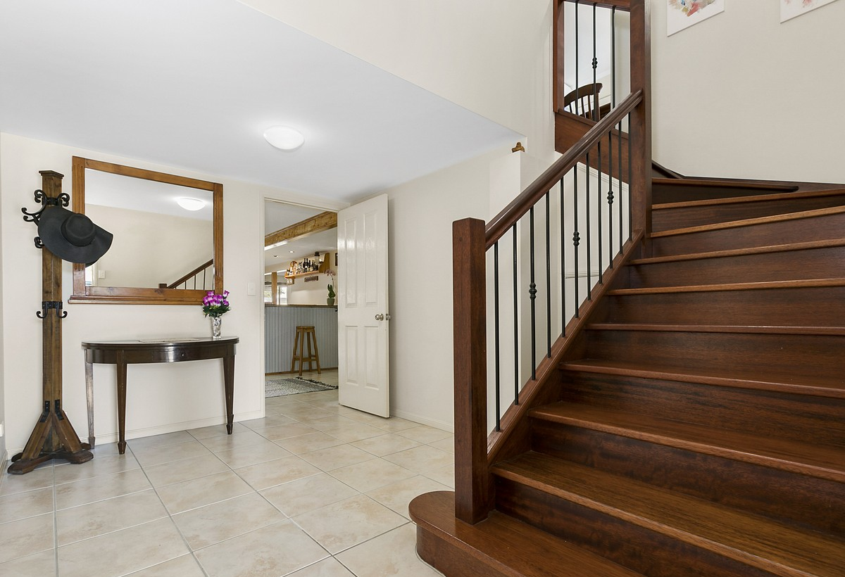 Downstairs expands the living options with a flexible layout ideal for a teenage retreat, guest accommodation, or extended family living. A large tiled rumpus room centres around a standout bar crafted from timber milled from the property’s original silky oak tree—adding warmth and character. This level also includes a second modern bathroom and a multi-purpose utility room.