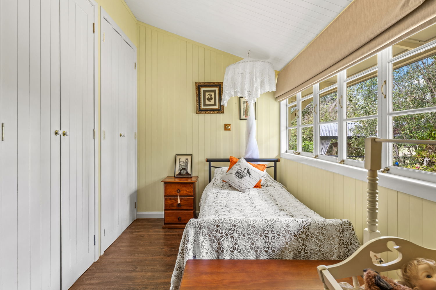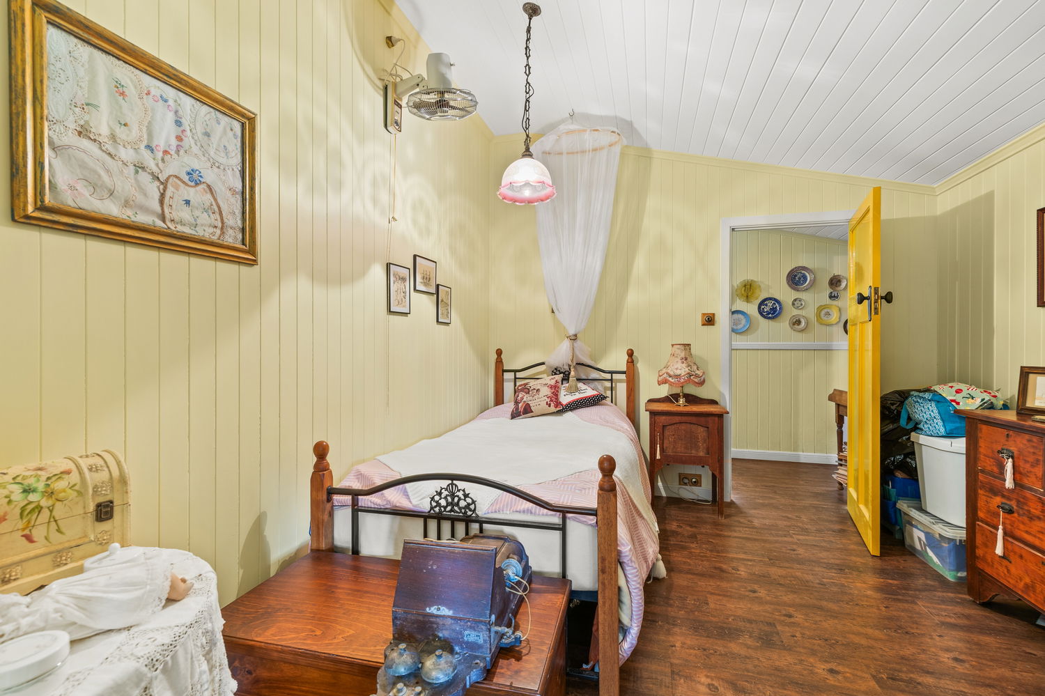 Set back from the road and surrounded by established greenery, the home exudes warmth and personality from the moment you arrive. Inside, you’ll find multiple living zones, high ceilings, and hybrid timber floors that capture the essence of true Queenslander living. The country-style kitchen features gas cooking and plenty of character, while ceiling fans, split-system air conditioning, and solar power ensure year-round comfort and efficiency – a rare find in homes of this vintage.