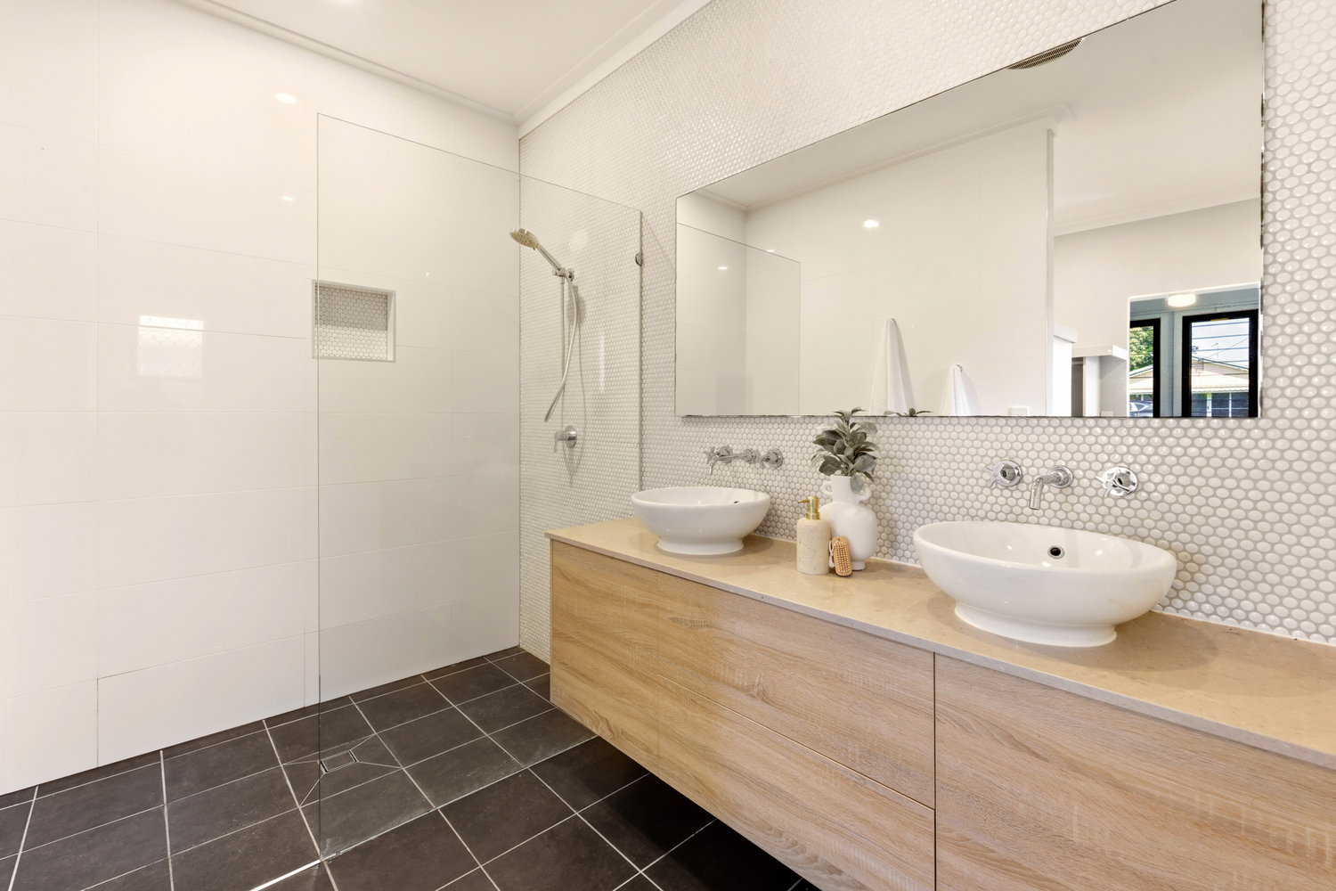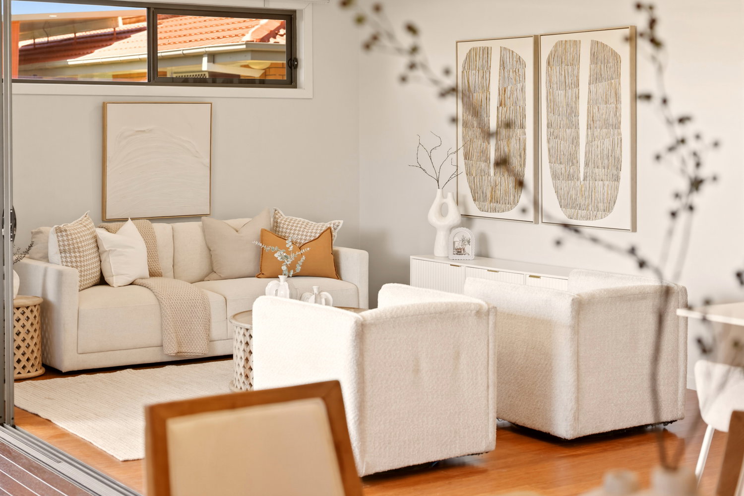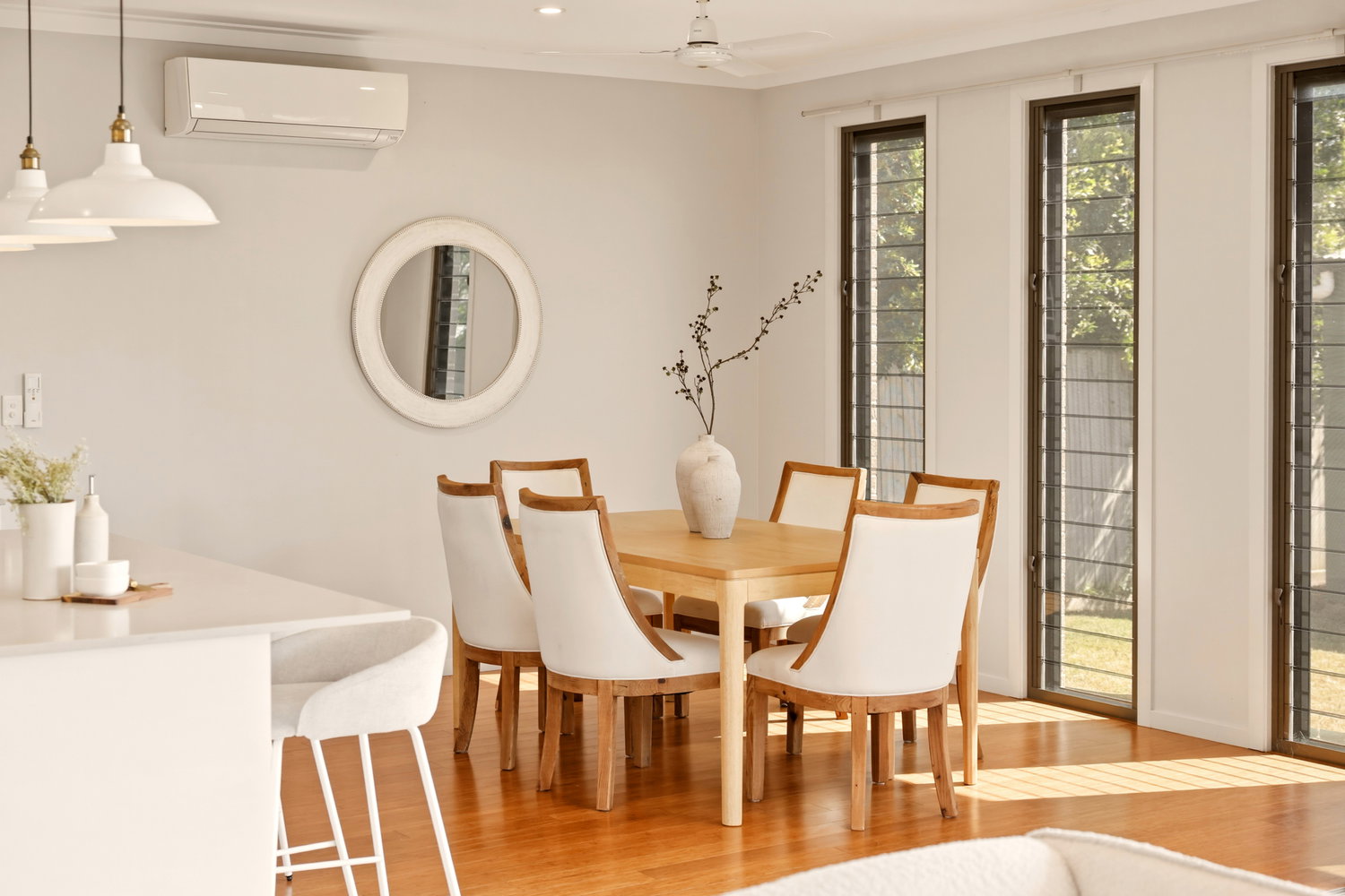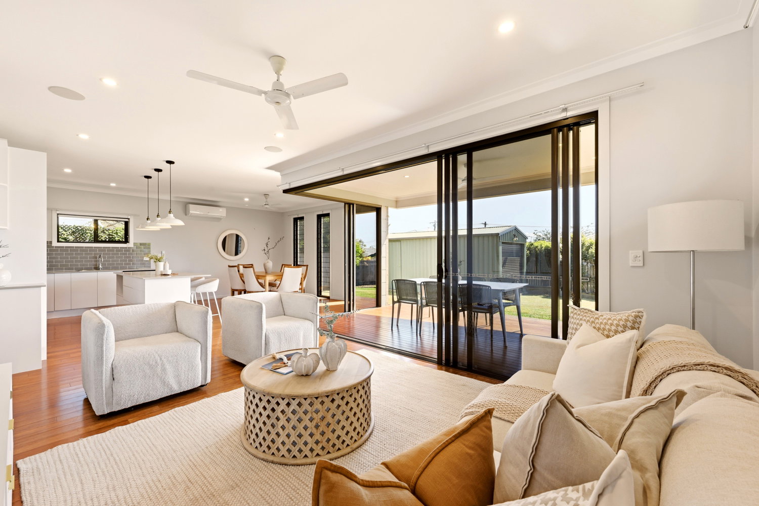 • Light-filled open-plan living, dining, and kitchen area