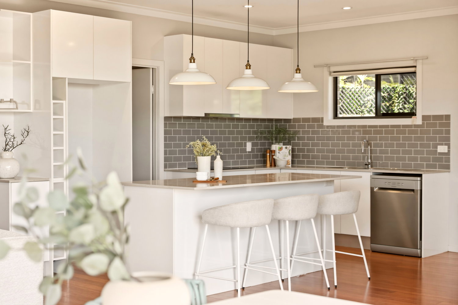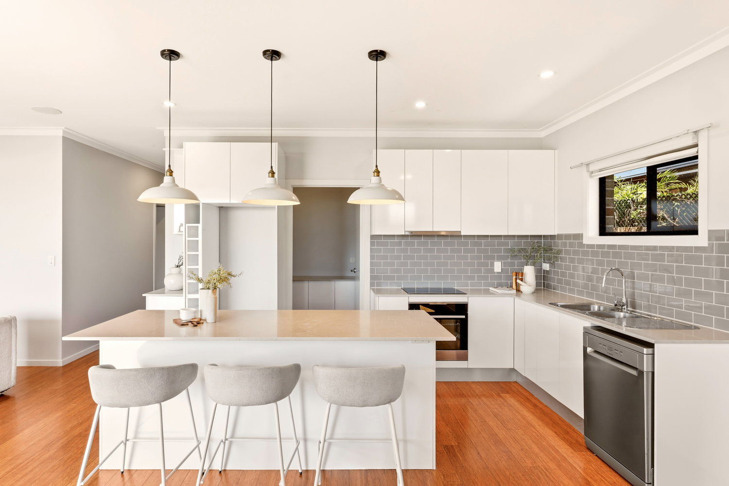At the heart of the home, the light-filled open-plan kitchen, dining, and living area creates a warm and inviting space for everyday living and entertaining. The contemporary kitchen is thoughtfully designed with quality finishes, generous bench space, and excellent storage.
