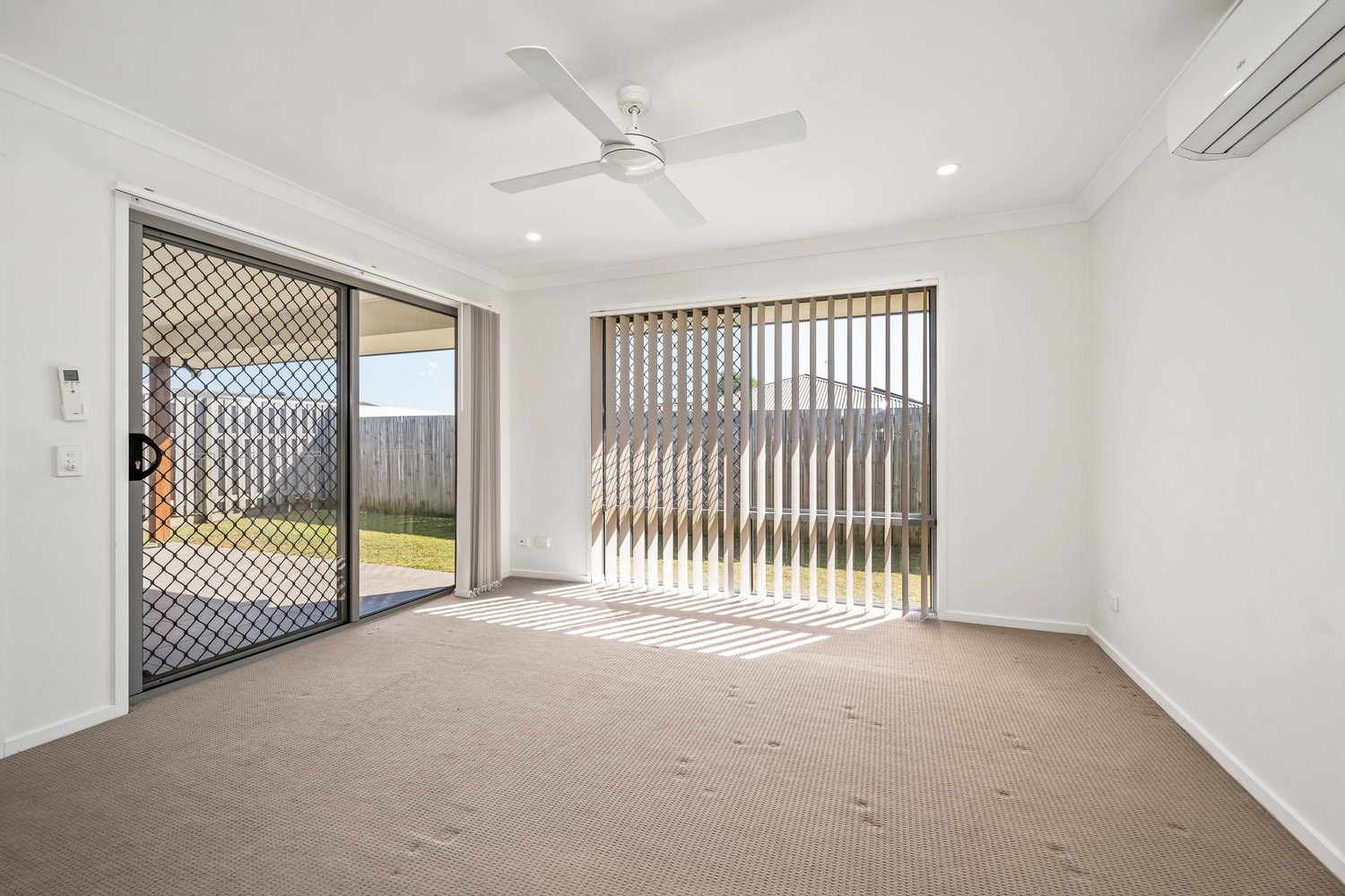 The master suite is privately positioned with air-conditioning, ceiling fan, walk-in robe and ensuite, while the additional three bedrooms all include mirrored built-in robes and ceiling fans. With security screens throughout, a spacious laundry, and double lock-up garage with internal access, this vacant home offers both comfort and practicality in a fantastic Mango Hill location.